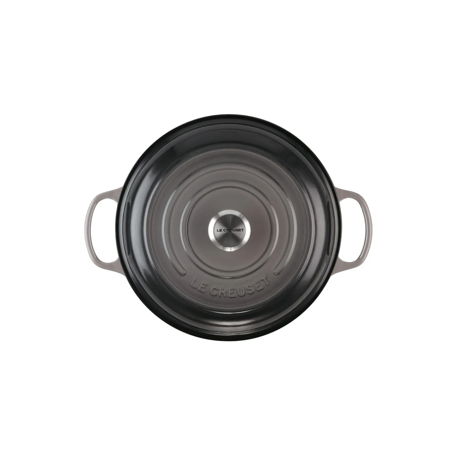 Vores støbejernsprodukter fremstilles på vores eget franske støberi og er vaskeægte køkkenlegender. Denne buffetgryde er ingen undtagelse. Den store, flade form og de lave kanter gør den perfekt til at brune kød og grøntsager, simre gryderetter, lynstege og bage. Den karamelliserer maden effektivt, så du får velsmagende resultater. Låg med rustfri stål- eller fenolknop tåler opvaskemaskine. Låg med guld-, iriserende-, kobber- og sort nikkelknop skål håndvaskes for at bevare deres finish. Egnet til følgende varmekilder: ovnens grill, ovn, elektrisk, keramisk kogeplade, gas og induktion.