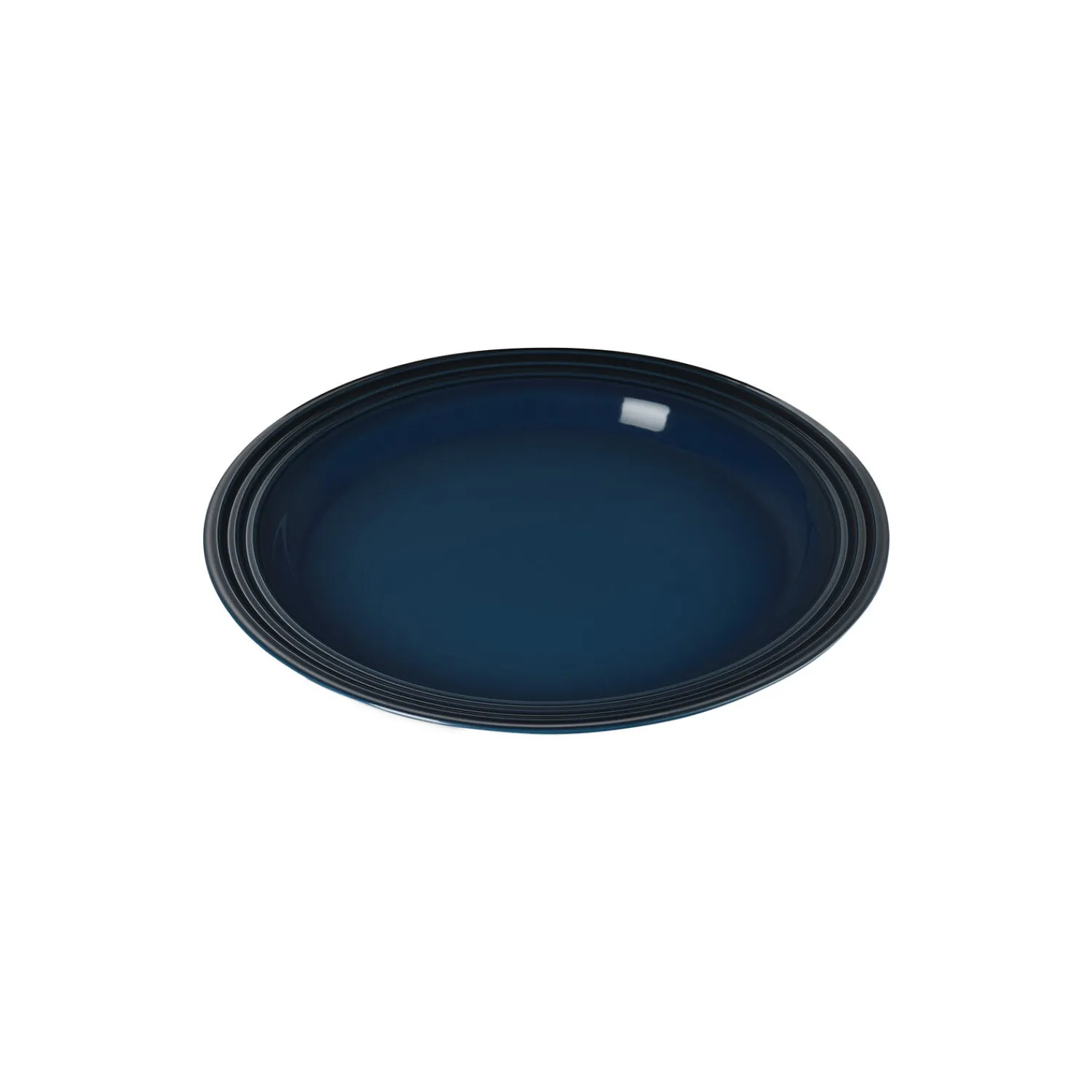 Pynt op på dit bord med denne klassiske middagstallerken i stentøj. Den er designet med en nedsænket bund, hvor eventuel væske samles. Derved undgår du at spilde og får mere frihed til at servere alle slags lækre retter. Kanten er designet med Le Creusets karakteristiske tre ringe – fans af Le Creuset ved besked.