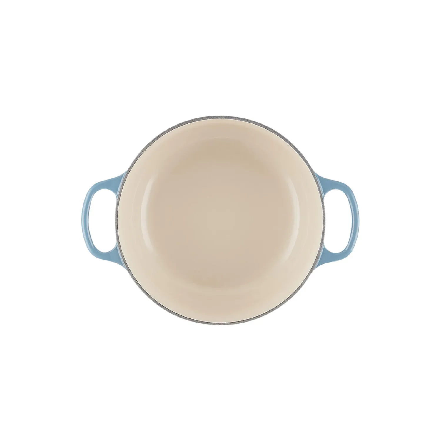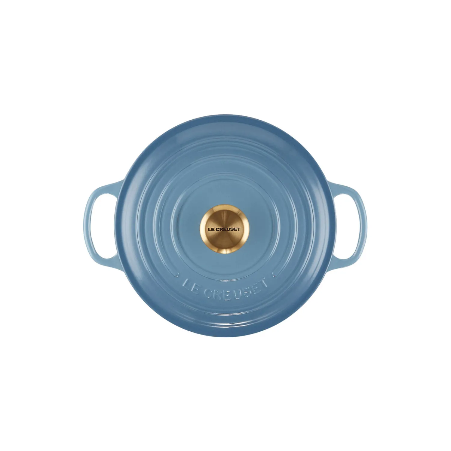 Le Creuset-gryden er en kulinarisk klassiker, som har været elsket af kokke i hele verden i næsten et århundrede. Denne klassiker er perfekt til stuvninger, stege, supper, gryderetter og bagning. Du behøver kun dette ene, ikoniske produkt til alle dine forskellige og mindeværdige måltider, der får tænderne til at løbe i vand. Låg med rustfri stål- eller fenolknop tåler opvaskemaskine. Låg med guld-, iriserende-, kobber- og sort nikkelknop skål håndvaskes for at bevare deres finish.