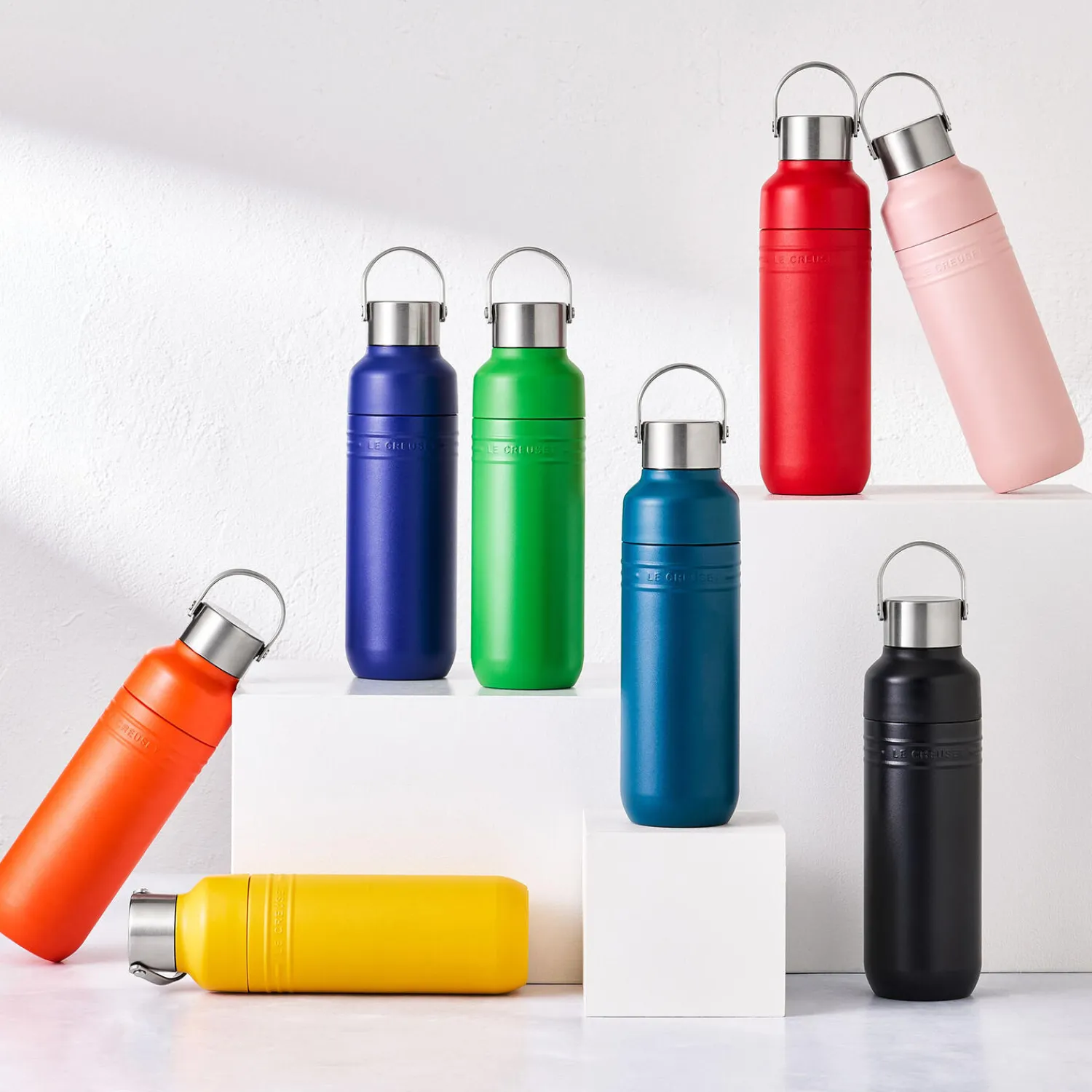 Introducerer den nye On the Go-kollektion fra Le Creuset – en smart, farverig og genanvendelig serie af bærbare beholdere til mad- og drikkevarer, designet til at følge dig hvor som helst, når som helst. Den isolerede vandflaske fra Le Creuset On the Go-kollektionen er skabt med fokus på komfort og har en smal åbning i toppen for nem drikning samt en større åbning, der er perfekt til at tilføje isterninger, citron eller mynteblade. Den større åbning gør også genopfyldning og rengøring lettere. Takket være den dobbeltvæggede vakuumisolering holder dine drikkevarer sig varme eller kolde i flere timer. Den holdbare, farverige overfladebehandling er ridsefast og bevarer sit ikoniske udseende, mens den kompakte størrelse på 500 ml passer perfekt i din rygsæk. Flasken er udstyret med tætsluttende låg, der forhindrer spild, og er fremstillet i rustfrit stål, der er hygiejnisk og nemt at rengøre – din farverige ledsager. Disse genanvendelige produkter er ikke kun skånsomme mod miljøet, men kommer også i Le Creusets ikoniske farvepalet for en tidløs følelse. Gør dig klar til at bringe farver i din hverdag – uanset om du skal på picnic, vandretur eller blot pendler til arbejde. Med holdbare overfladebehandlinger, lækagesikre låg og overflader, der er lette at holde rene, tilbyder kollektionen maksimal komfort og brugervenlighed. Med On the Go kan du opleve friheden ved at have Le Creusets velkendte kvalitet med dig, uanset hvor din dag bringer dig.