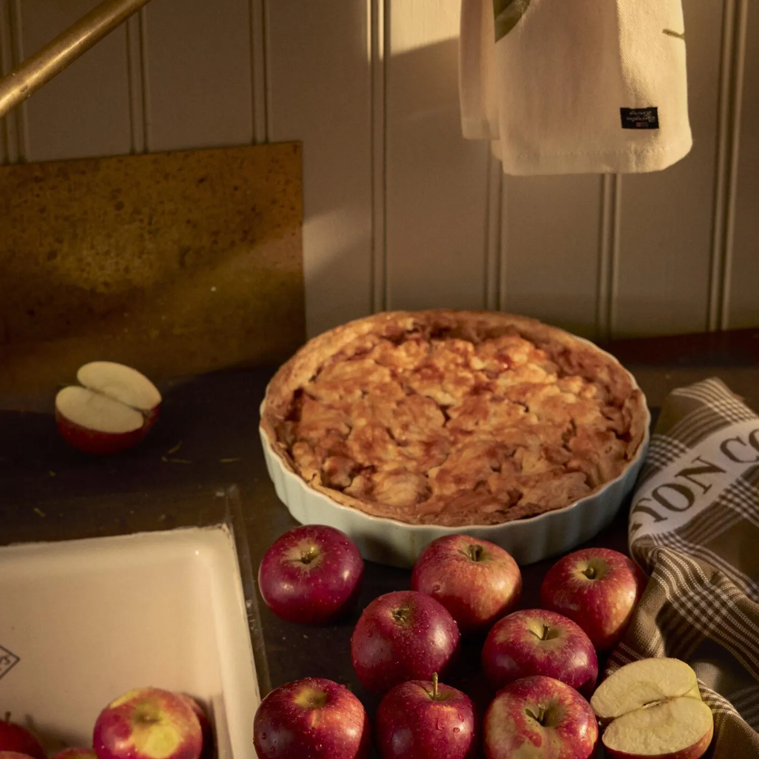 Tilfør et strejf af haveinspireret elegance til dit køkken med vores Vegetables økologiske bomuldshåndklæde i sofistikerede hvide og olivengrønne toner. Det charmerende sæsonbestemte grøntsagsmønster tilføjer karakter, mens det samtidig bevarer en raffineret æstetik, der komplementerer enhver køkkenstil. Fremstillet af 100 % økologisk bomuld i en blød twillvævning, kombinerer dette køkkenhåndklæde hverdagsfunktionalitet med Lexingtons karakteristiske kvalitet og sans for detaljer.De omhyggeligt designede garnindfarvede sidestriber tilføjer et klassisk, rustikt præg, mens den foldede kant sikrer holdbarhed gennem utallige anvendelser. Fremstillet i Indien på en Certified Green Factory med OEKO-TEX®-certificering er dette køkkenhåndklæde både et bæredygtigt og stilfuldt valg til dit hjem. Kombiner det med andre artikler fra vores efterårskollektion til køkkenet for et koordineret sæsonpræget look.