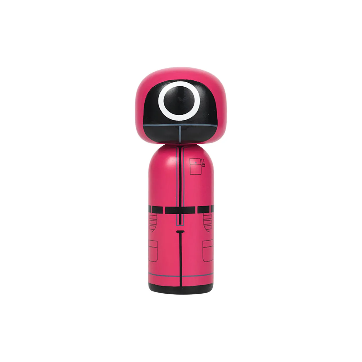 Oplev den gådefulde tiltrækningskraft fra Squid Game med denne håndlavede Lucie Kaas Kokeshi-dukke, der er inspireret af seriens maskerede arbejdere. Med den mystiske figurs ikoniske lyserøde dragt og cirkelmaske repræsenterer denne figur den skræmmende tilstedeværelse af spillenes lavest rangerende håndhævere. Dette unikke samlerobjekt blander traditionelt håndværk med moderne popkultur og fejrer den globale indflydelse af Squid Game, hvilket gør det til et must-have for både fans og kunstsamlere. Saml alle 3 figurer i denne kapselkollektion, der er udviklet sammen med Netflix.