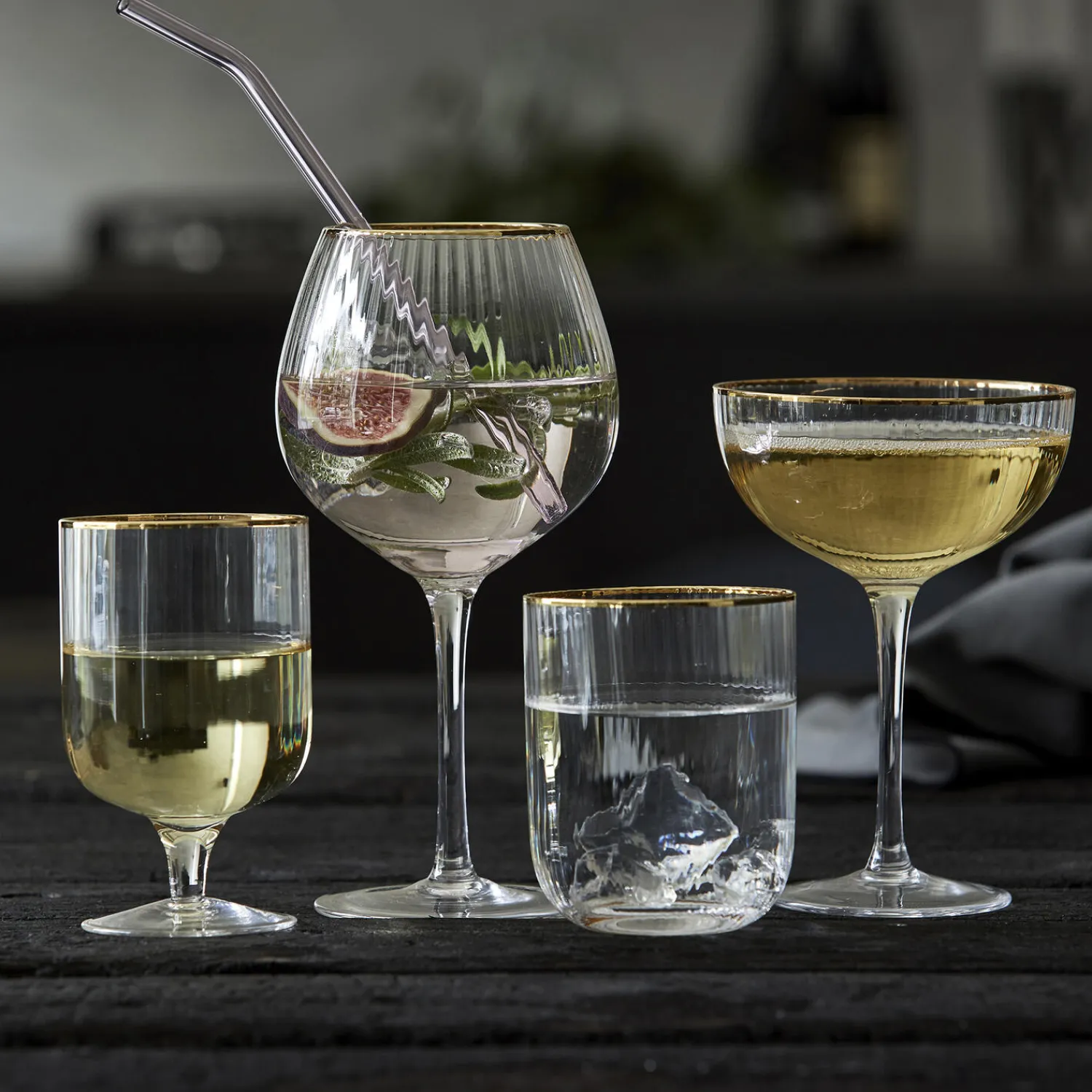 Smukt cocktailglas med bløde, rundede former. Det elegante, riflede design med en fin guldkant giver glasset et flot vintagelook, der samtidig afspejler tidens trends. Server festlige cocktails, drinks eller desserter i glasset og lad de fine facetter reflektere lyset og glassets indhold på smukkeste vis.