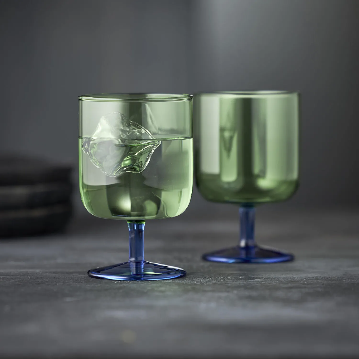 Gør hverdagen mere festlig med farverige vinglas, der giver borddækningen et let, legende og levende udtryk.
