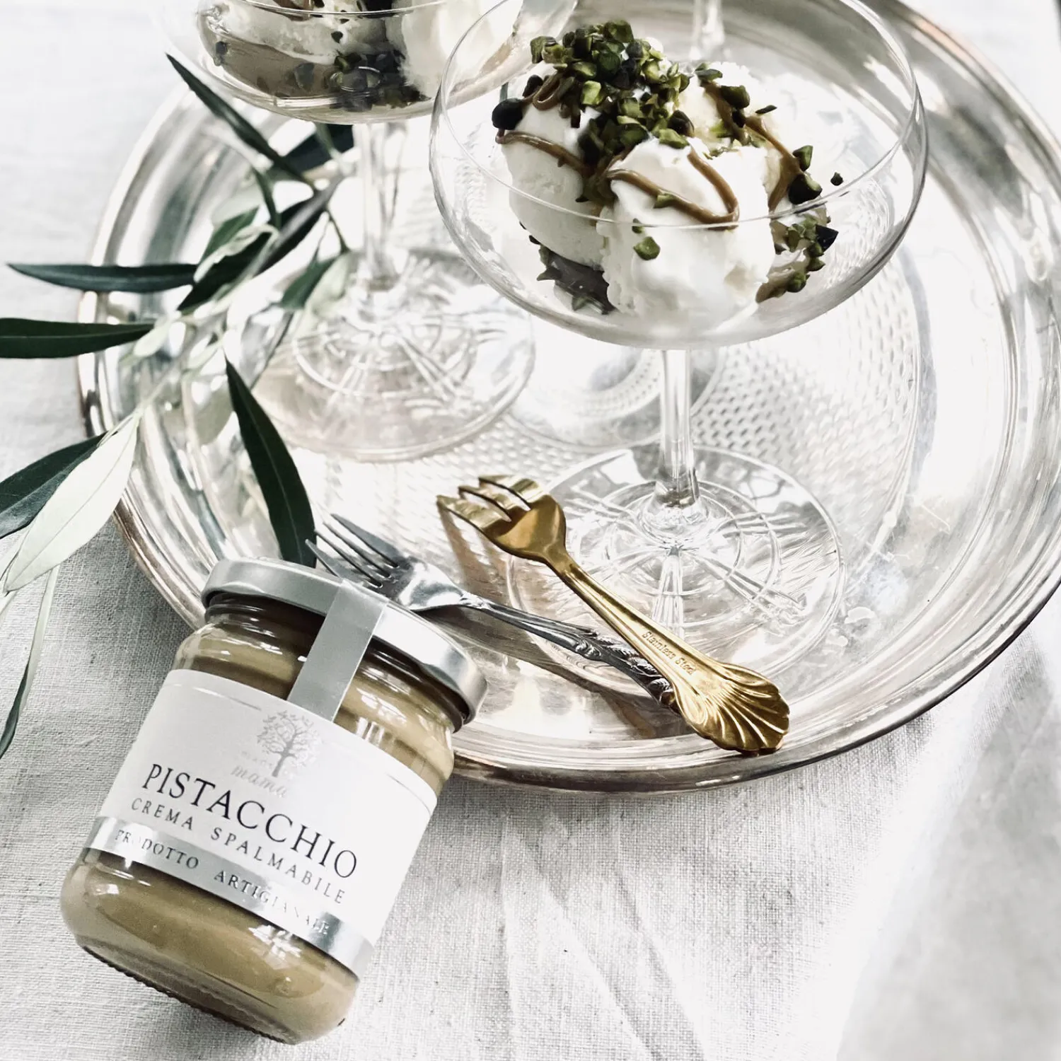 Made by Mamas pistaciecreme er som altid lavet udelukkende på rene råvarer uden kunstige tilsætningsstoffer. Den smager ganske enkelt af pistacienødder, og fra alle der har smagt den, har der kun lydt et Uhmm! Det er en eksklusiv spread med sit høje indhold af pistacienødder og smagen komplimenterer brød, bagværk og is på den bedst tænkelige måde.