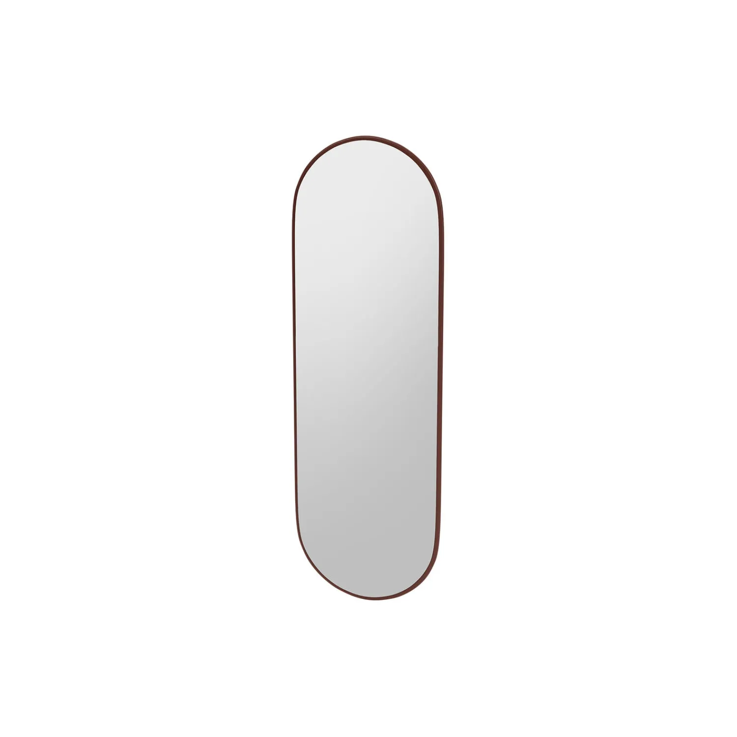 Colour Frame Mirrors er sammensat af 4 mm forsølvet glas på 12 mm MDF med en 13 mm spejlramme. Et spejl har fire huller til ophæng og kan monteres enten lodret eller vandret. Skruer er inkluderet. Alle spejle kan bruges i vådrum, men må ikke udsættes for direkte kontakt med vand. FIGURE er et aflangt ovalt spejl, der passer perfekt i soveværelset eller entréen. FIGURE er designet som et fuldfigurspejl med en blød oval form, der komplimenterer Montana-reolsystemets skarpere design.