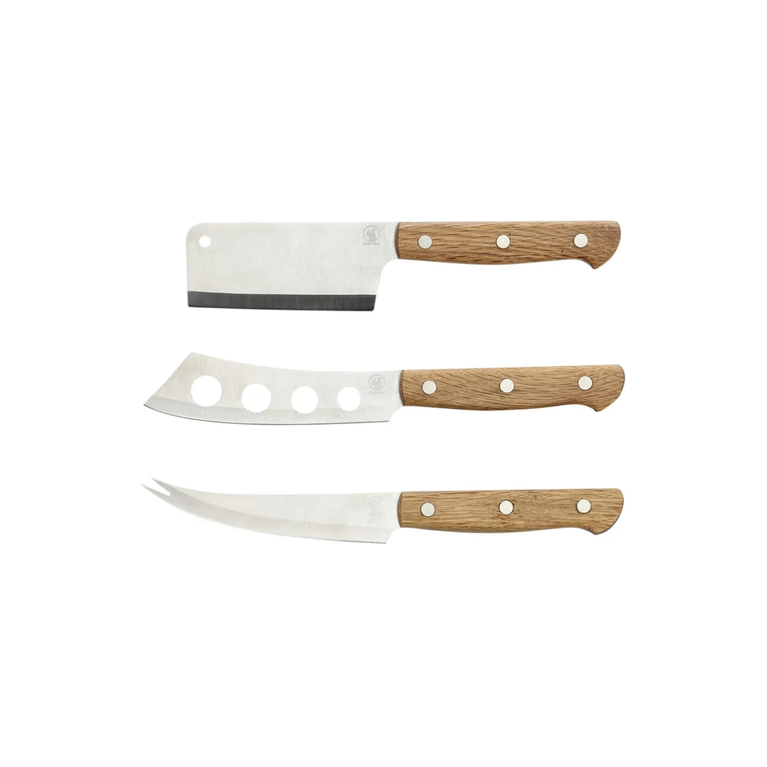 Ostesættet med tre osteknive er det perfekte tilbehør til osteanretningen. Knivbladene er udført i rustfrit kvalitetsstål og håndtagene i olieret eg, som ved brug vil udvikle patina og blot blive smukkere, jo mere knivene bruges. Træhåndtagene er udformet af ét stykke træ og er behagelige at holde om. Vaskes med varmt vand og mild sæbe og tørres straks efter. Ikke egnet til opvaskemaskine.