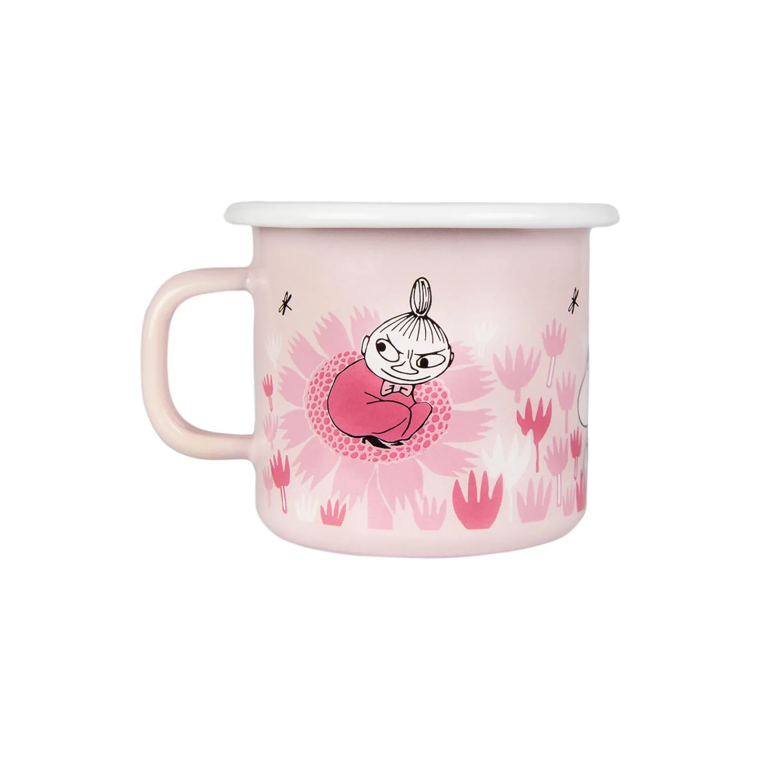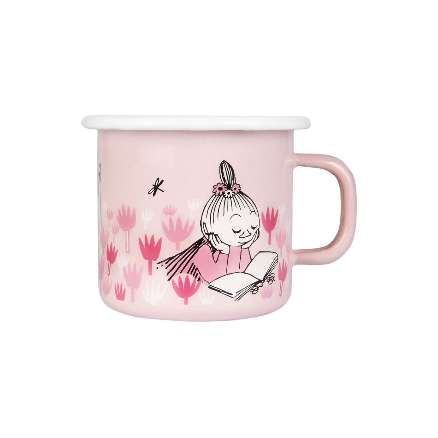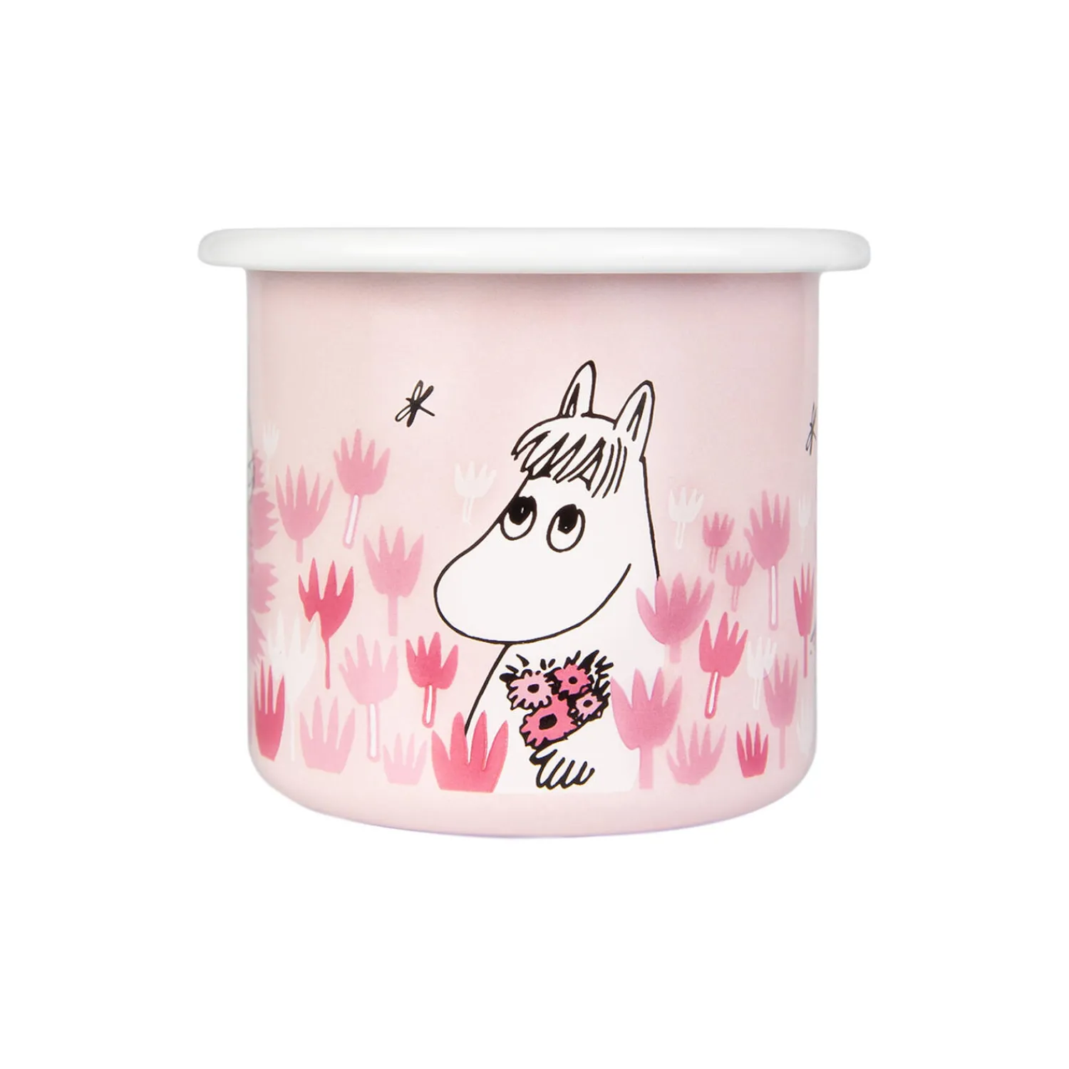 The mug features Mymble, Little My and Snorkmaiden – the girls of the Moominvalley. The enamel mug is suitable for both hot and cold drinks. Muurla’s enamelware consists of a carbon steel core that carries a double-coating of enamel. The products are durable and light. Due to these traits the items can also be used outdoors, in addition to traditional settings. Dishwasher safe. Do not put in microwave oven.