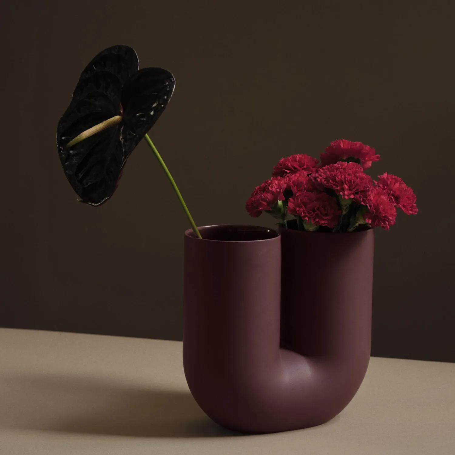 The Kink Vase brings a contemporary form to the archetypal flower vase through traditional craftsmanship and playful design language. With its double opening, the Kink Vase adds a sculptural sentiment to the room, even when not in use. The vase’s satin-glazed finish provides a refined, tactile feel that enhances its contemporary design. Available in two sizes, both are perfect for displaying flowers – use the larger Kink as a statement floor piece or sculpture, while the smaller size suits shelves, countertops, and windowsills.