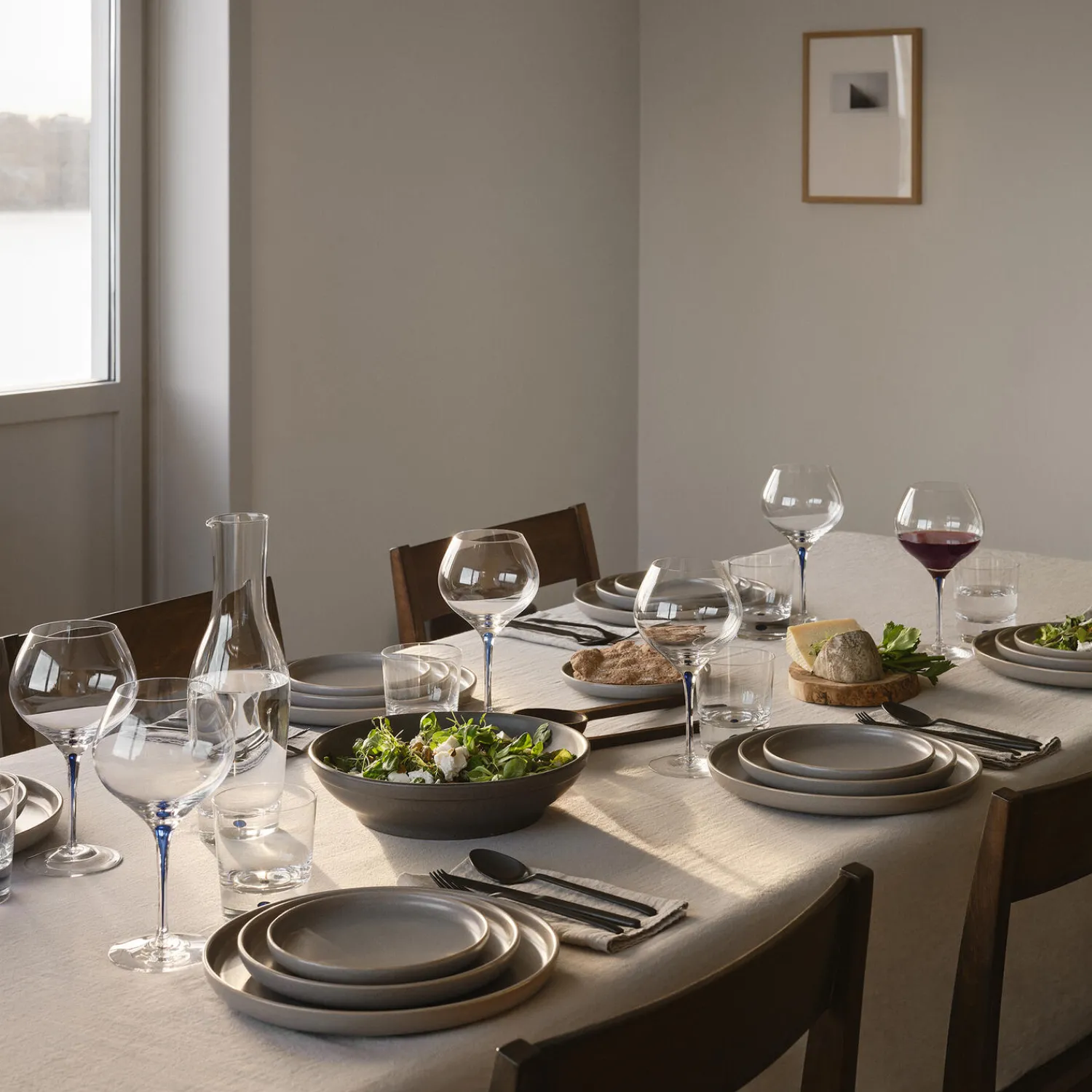 Intermezzo Carafe by Orrefors and holds 112 cl and is intended for both wine and water. The carafe is mouth-blown in Sweden by expert glassblowers with a drop of blue sealed inside the base – an innovation based on traditional craftsmanship. The series was introduced in 1984 and is designed by Erika Lagerbielke.