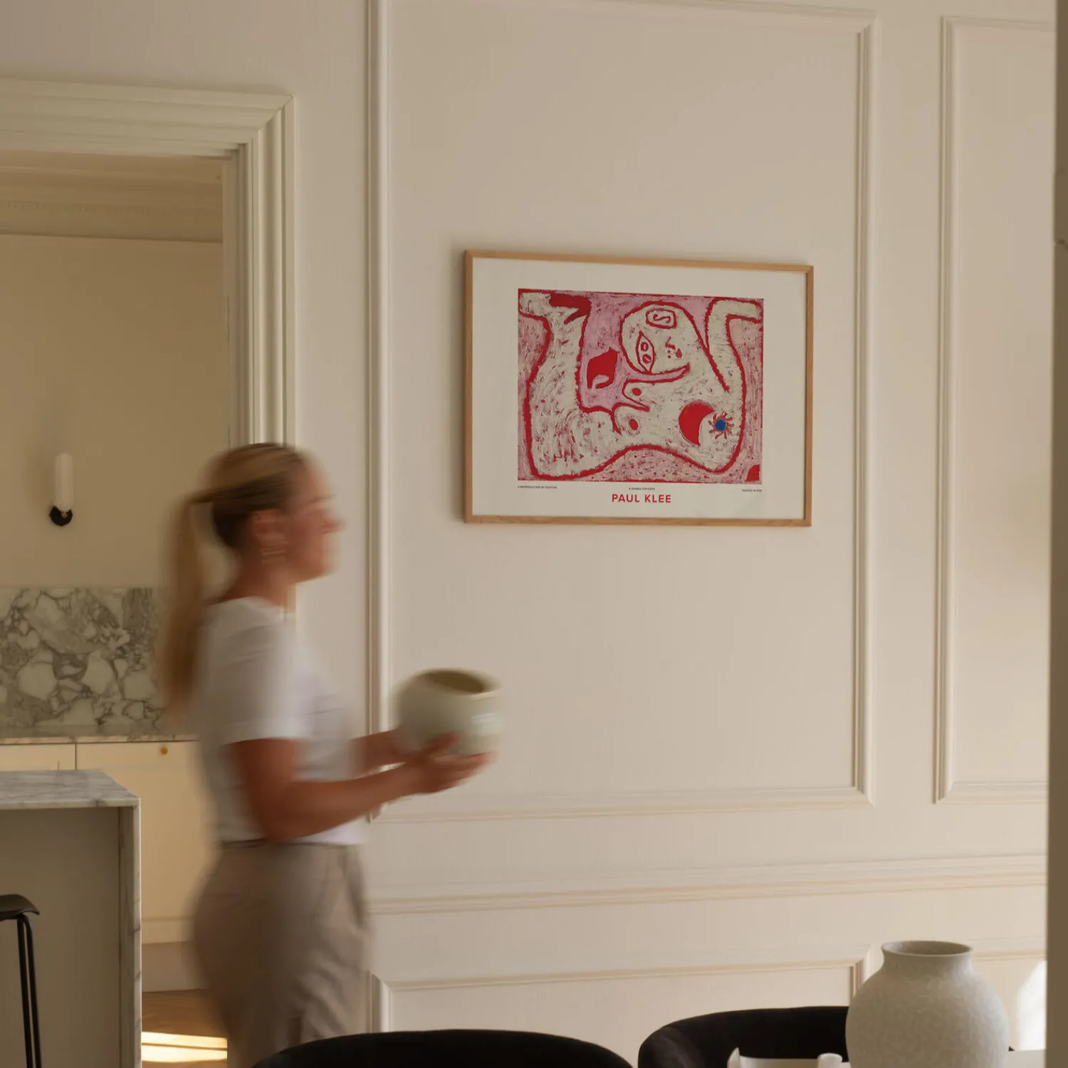 Kunstplakaten: “A Woman for Gods” af kunstneren Paul Klee er en abstrakt illustreret plakat, der er genskabt af Peléton. Denne plakat serie med Paul Klees farverige og abstrakte kunstplakater, er karakteriseret ved hans opfindsomme og unikke teknikker.