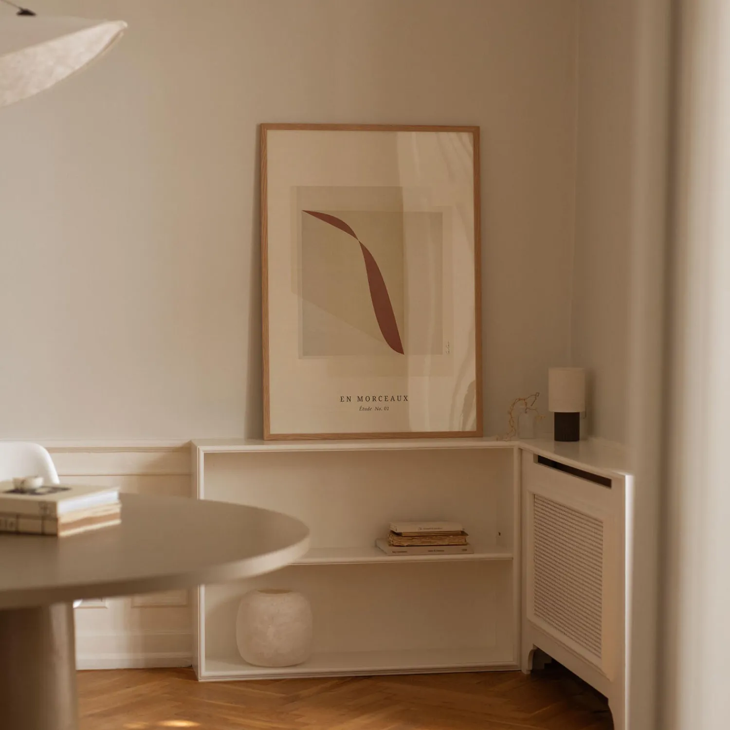 Dette kunstværk er en del af den eksklusive serie kaldet En Morceaux (som betyder i stykker). I denne kollektion kombinerede Karolina sin kærlighed til fine teksturer og stykker med dristige og rene former.