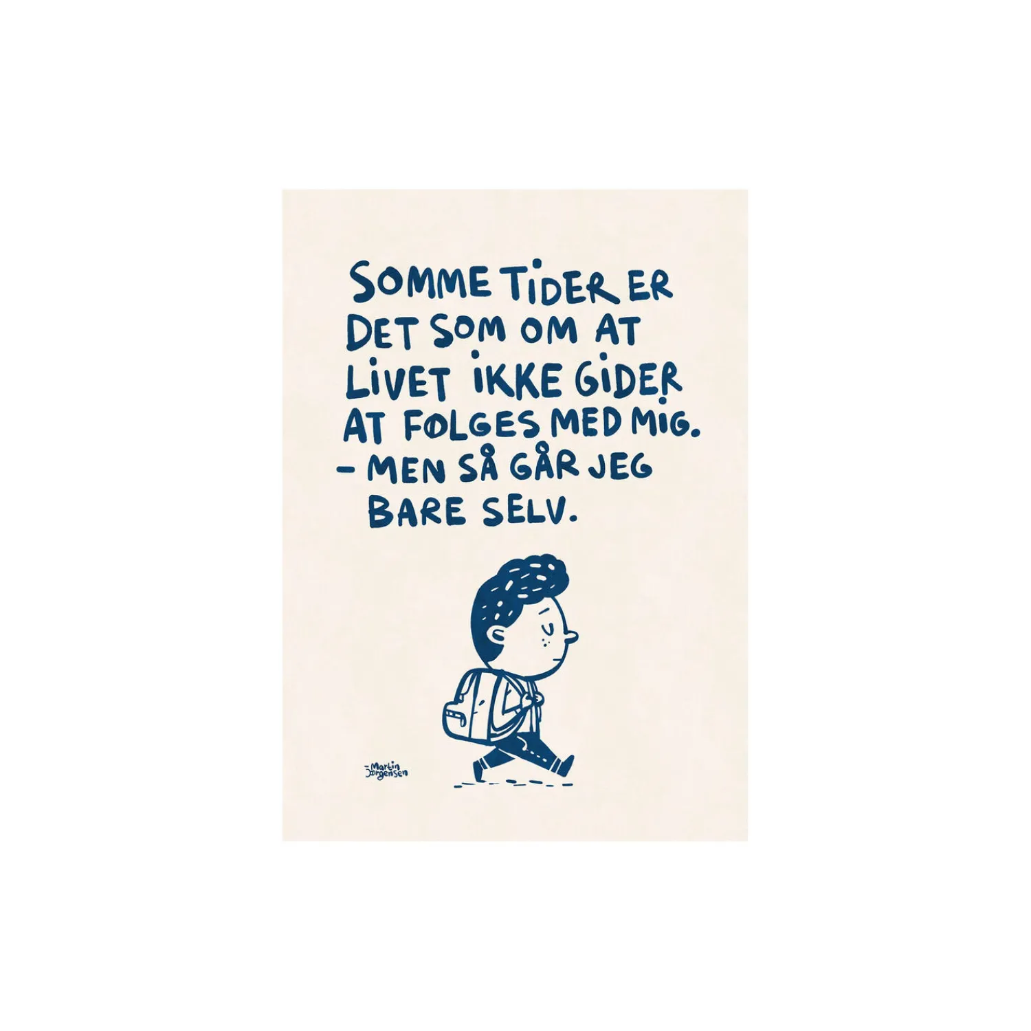 Kunstplakaten: “Gå selv” af kunstneren Martin Jørgensen er en illustreret plakat der er kurateret af Peléton. Det har været betydningsfuldt for Martin Jørgensen, at plakaten står til fri fortolkning.