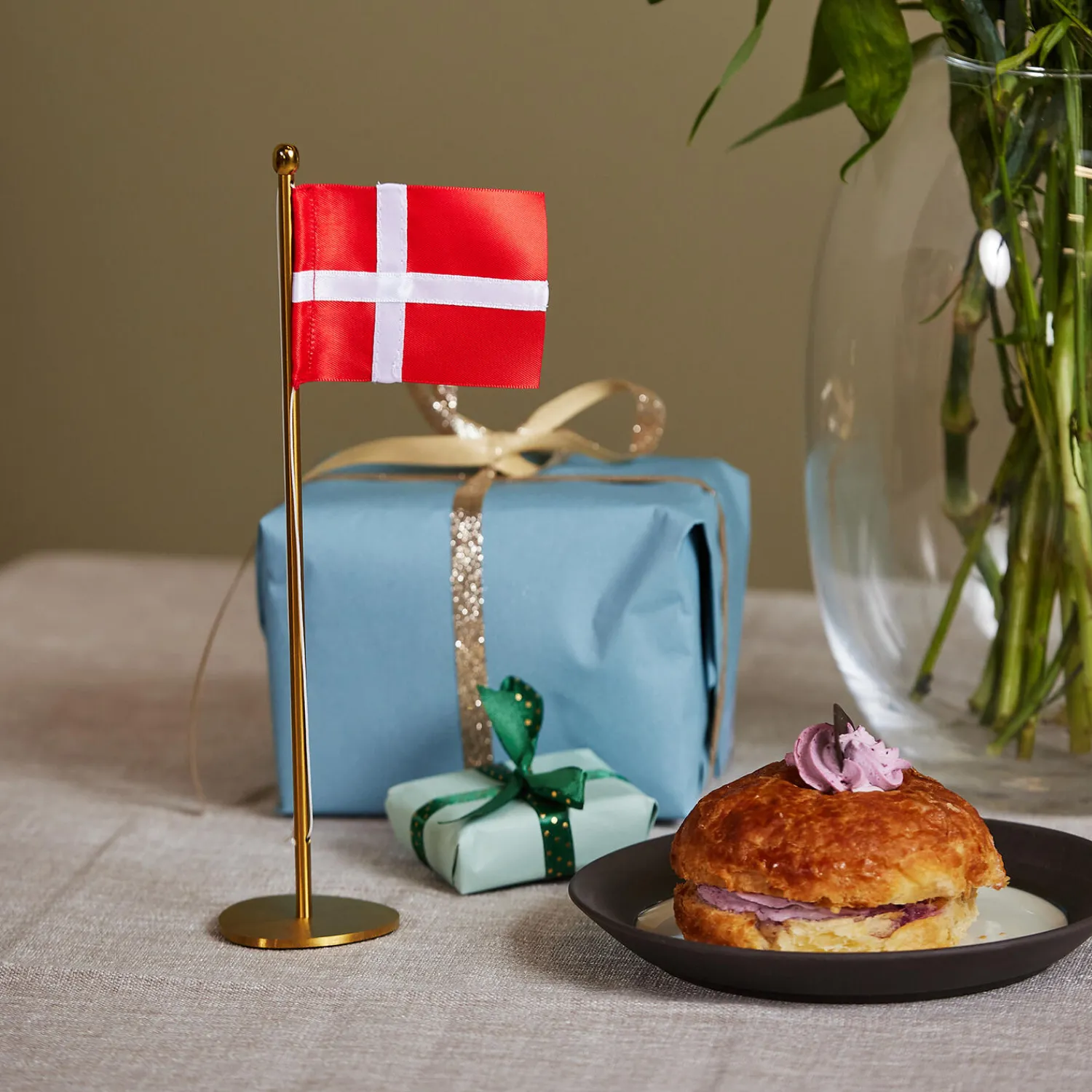 Lige siden Dannebrog faldt ned fra himlen, har flaget betydet noget ganske særligt for os danskere. Dannebrog er en selvfølge på morgenbakken, fødselsdagsbordet og i haven på mærkedage. Piet Heins messingflagstang på 25 cm kombinerer tidløst design med en elegant gylden messingfinish. Flagenes knop er formet som et Superæg, mens foden er en tri-Superellipse, der sikrer stabilitet. Det gør det nemt at balancere flaget, uanset om det skal bruges til morgensang eller fejring ved fødselsdagsbordet. Flagstangen er både dekorativ og funktionel og passer til enhver festlig lejlighed.
