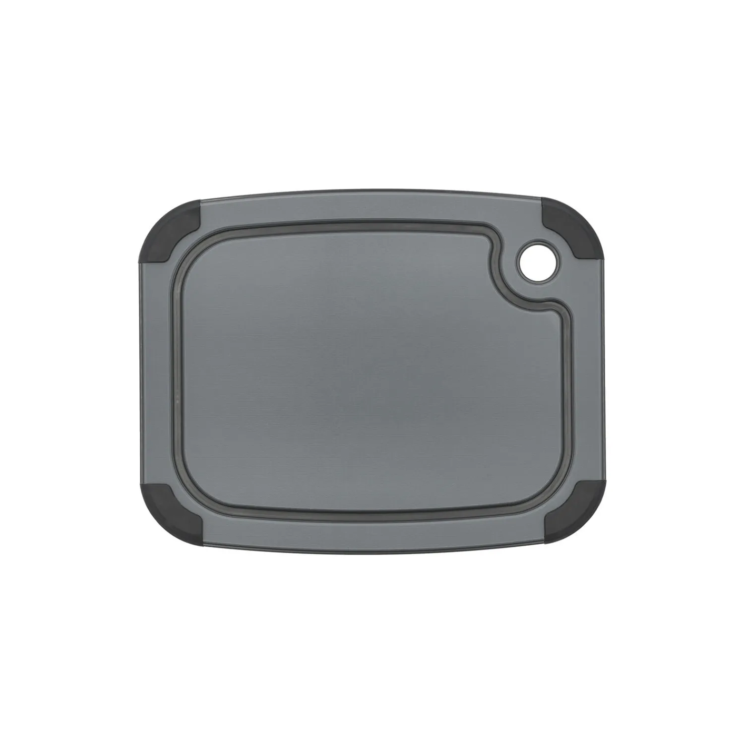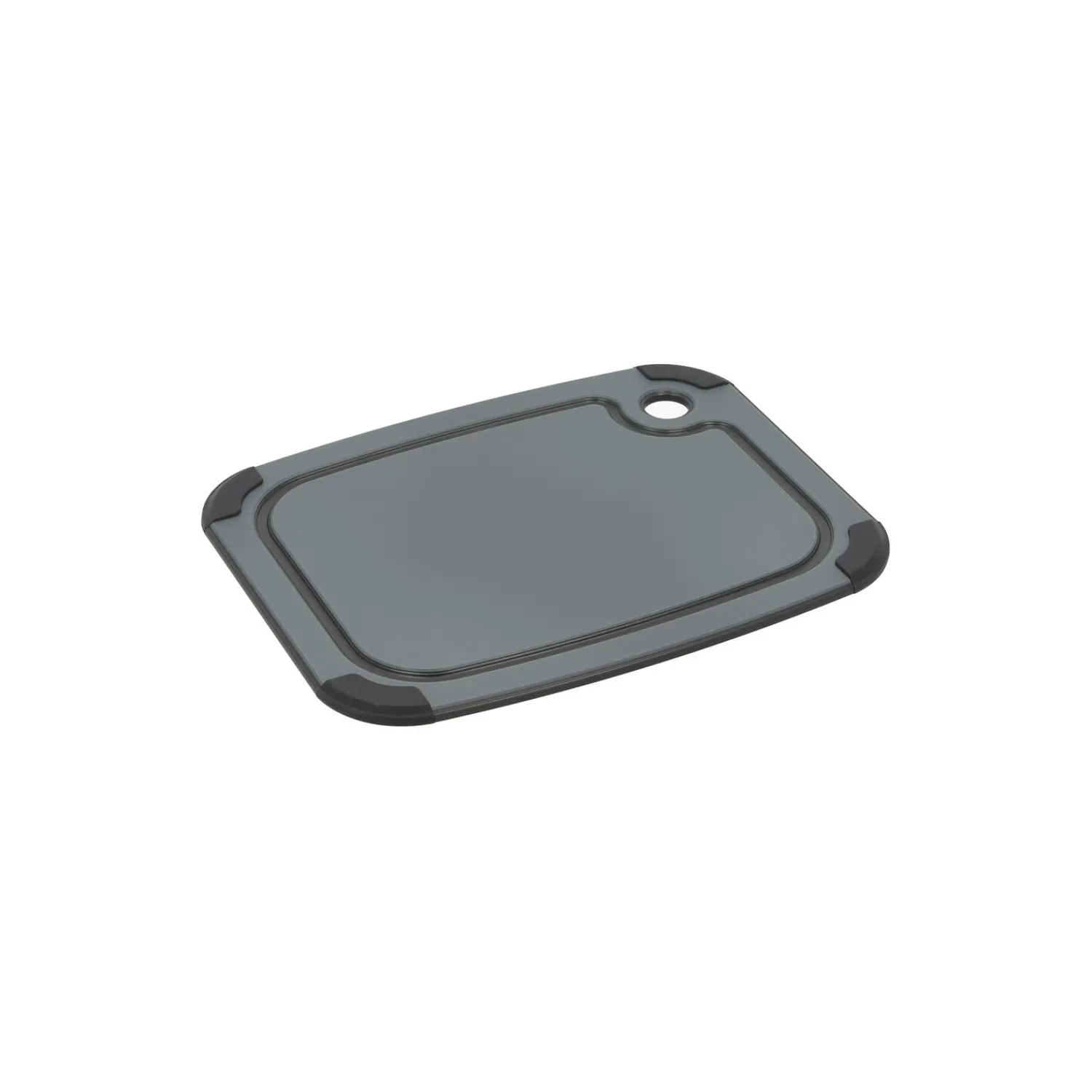Skærebræt med praktiske silikonekanter, som sørger for, at brættet ligger stabilt på bordet, mens du hakker og skærer. Det kan anvendes på begge sider – den ene side har en bred saftrille til saftige madvarer og en glat side til alt det andet. Velegnet til opvaskemaskine.
