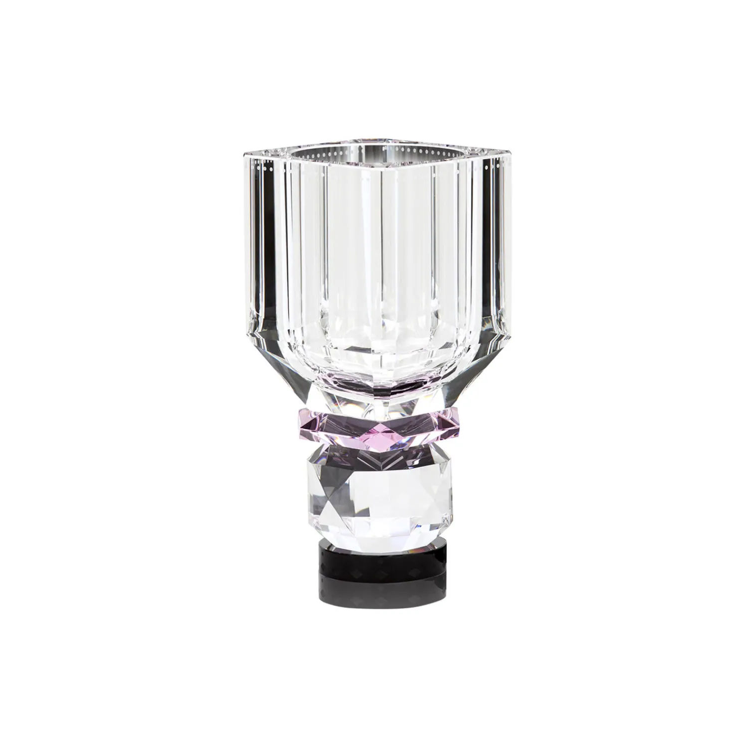 Utah vasen afspejler Reflections Copenhagens designeres vedvarende Art Deco-påvirkninger med sine rene, geometriske linjer. Vasen er skabt ud af håndskårede krystaller af høj kvalitet med ædelstenslignende og facetterede kanter, som giver vasen en iriserende effekt. Placer denne vase et lyst sted og oplev hvordan sollyset reflekterer gennem krystallen og skaber en blød belysning. Reflections Copenhagen foreslår at Utah vasen placeres ved siden af den lyserøde New Haven krystalskål.