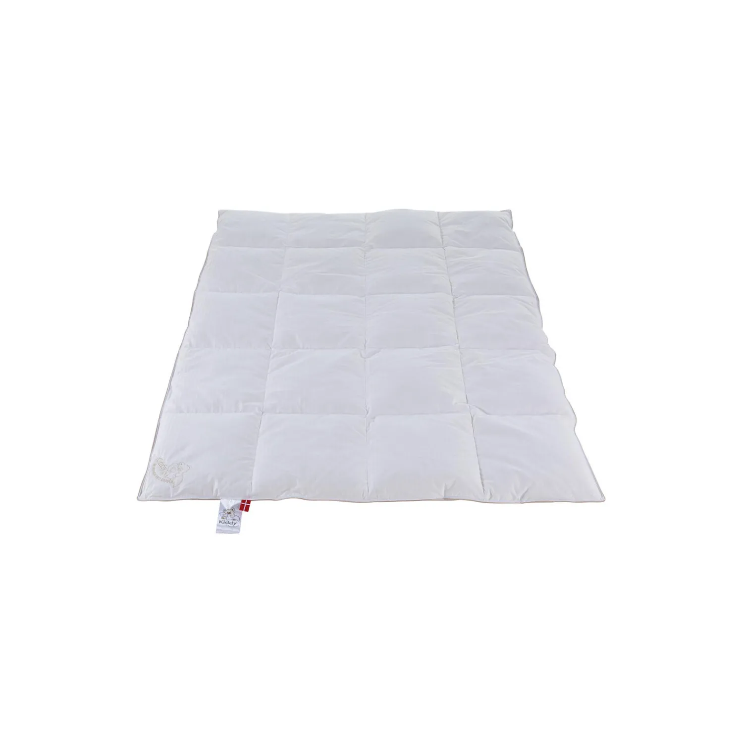 Kiddy Royal juniordyne med 275 g moskusdun og vår i bomuldstwill fra Ringsted Dun. Farve: hvid. mål: 100×140 cm. Bæreevne over 11.