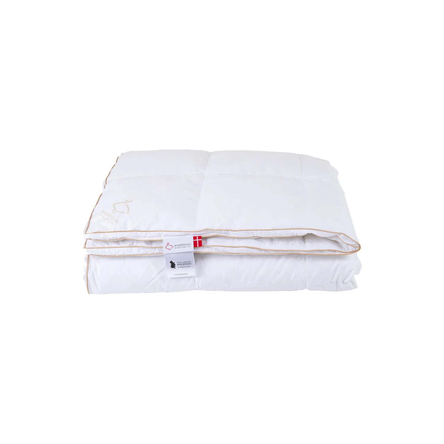 Svinedrengen lun helårsdyne med moskusdun og småfjer og vår i bomuldssatin fra Ringsted Dun. Farve: hvid. Mål: 140×200 cm. Fyldmængde: 600 g. Bæreevne over 11.