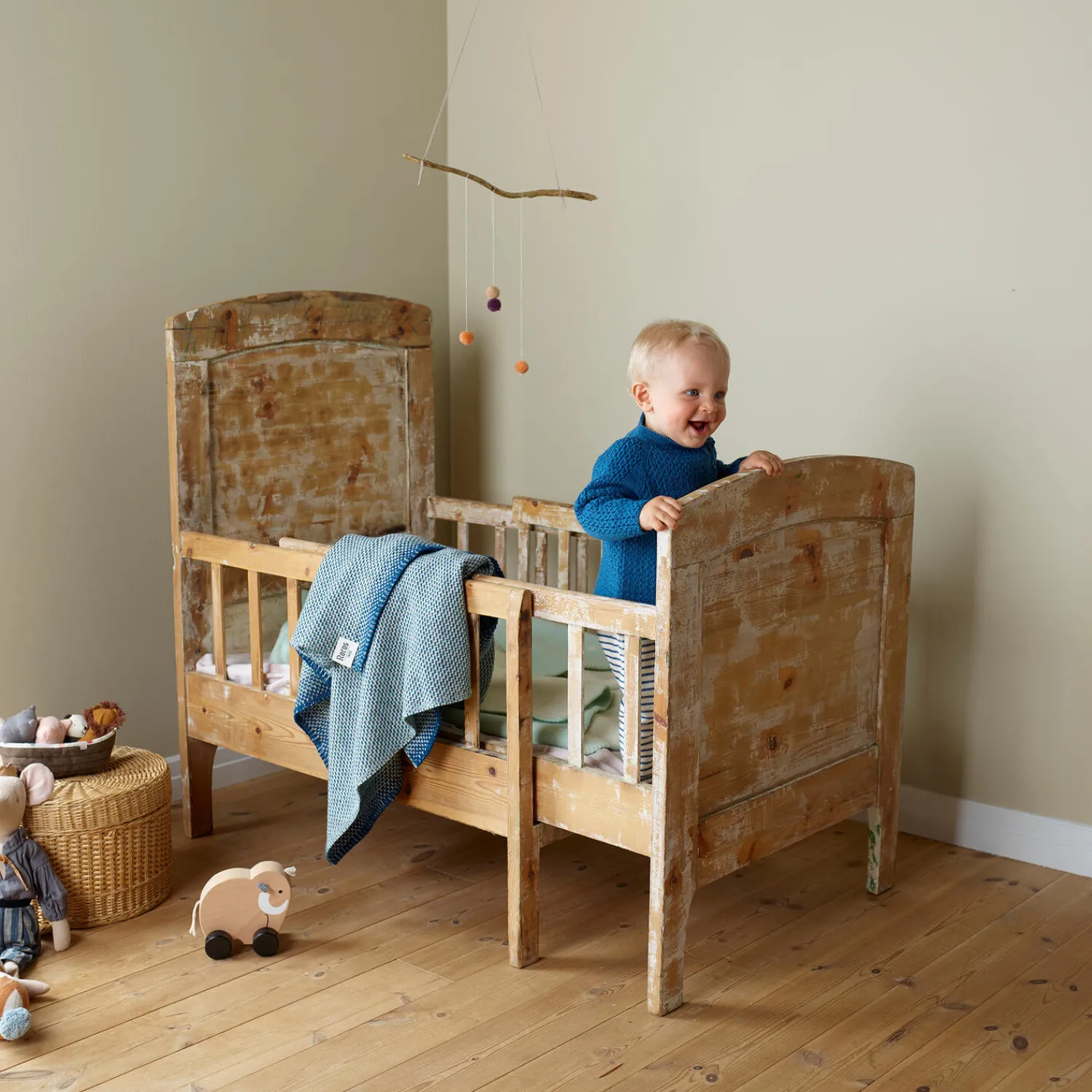 Una is a old Norse name that means the one that feels good. The blanket is constructed as a braid and the colors blend into graded shades.