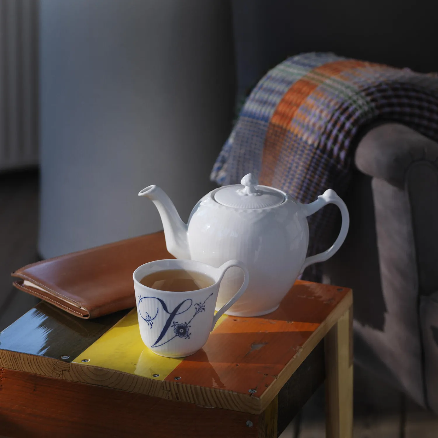Alfabet krus V i porcelæn fra Royal Copenhagen. Det personlige Alfabet Krus på 33 cl prydes af et håndmalet V, hvorfra der vokser små palmetter og en stiliseret blomst. Drej koppen i hånden, og bagsiden åbenbarer sig med en delikat, blåmalet detalje af florale elementer, som bærer tydelige referencer til Musselmalet Riflet-mønsteret. Brug det charmerende krus til enhver slags varm drik.