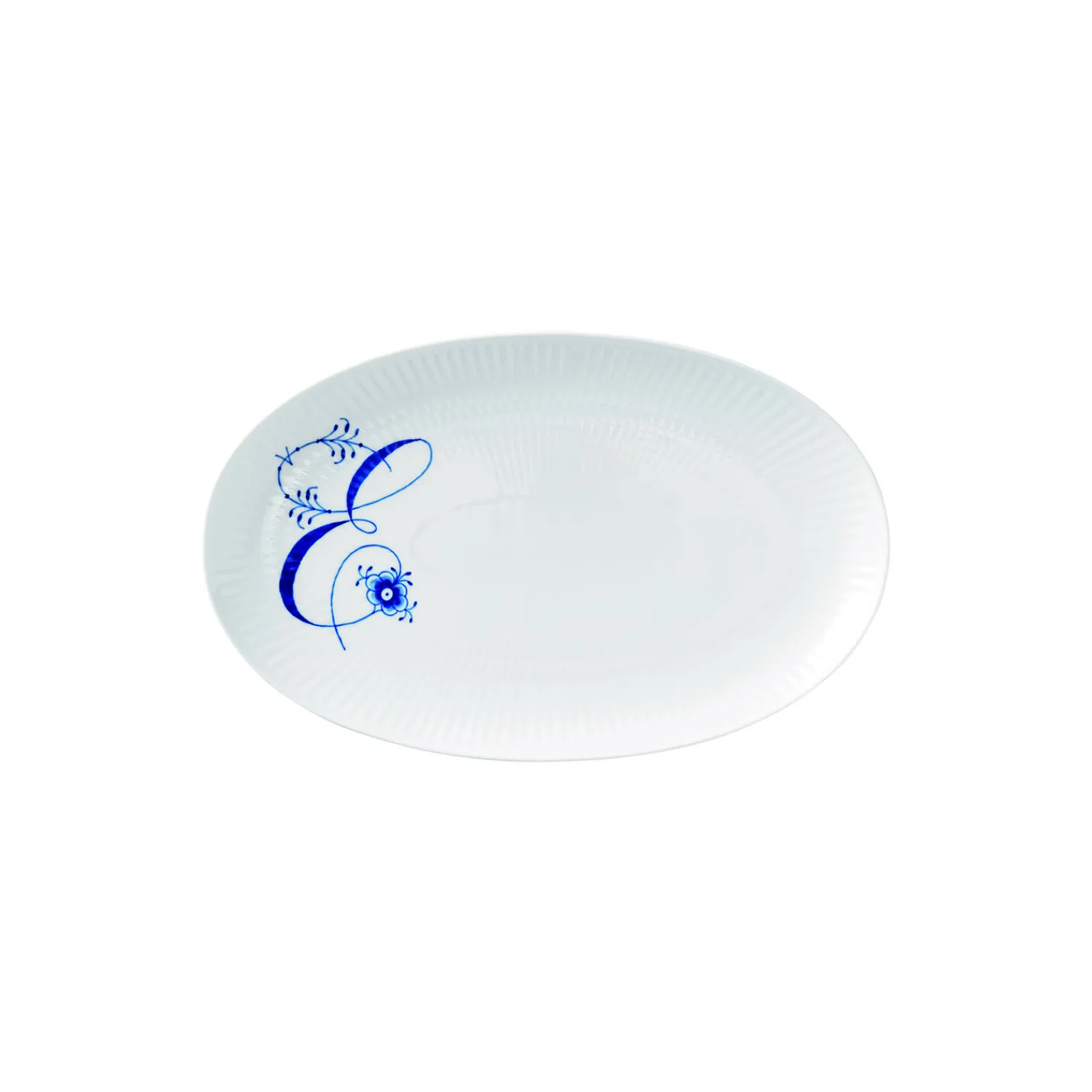 Alfabet tallerken E i porcelæn fra Royal Copenhagen. Det smukke ’E’ er håndmalet på denne ovale tallerken på 23,5 cm, som er et charmerende supplement til Alfabetkrusene. Brug den lille tallerken i en personlig opdækning og skab dit eget udtryk ved at kombinere den med andre steldele fra Royal Copenhagen.