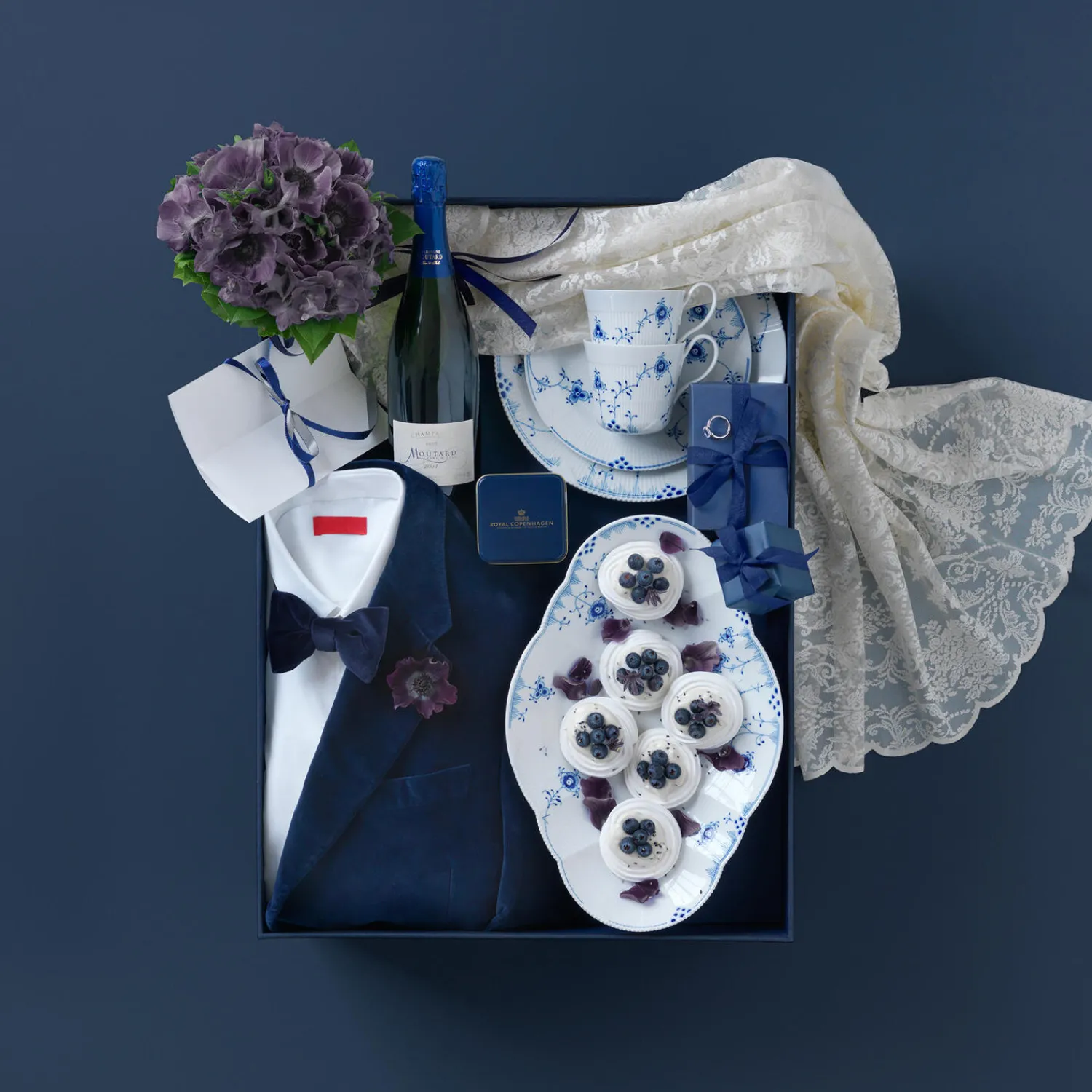 Dette store fad på 49 cm i det livlige Blå Elements-mønster overrasker med sin uhøjtidelige sammensætning af klassiske elementer. Taktile rifler er sat sammen i assymetriske brudstykker, der prydes af subtile fiskeskælsdekorationer og Flora Danicas delikate, takkede kant, mens den ovale form på fadet skaber et balanceret udtryk. Det håndmalede mønster snor sig legende rundt på det hvide porcelæn i en nytænkning af den klassiske æstetik, der kan skabe en iøjefaldende borddækning i ethvert hjem. Blå Elements blomstrer i glædefyldt elegance med en inspirerende sammensætning af klassiske Royal Copenhagen designelementer og håndmalede dekorationer, der får lov at vokse frit på porcelænets overflader. Ligesom Hvid Elements og Multifarvet Elements er Blå Elements smuk i sig selv eller i kombination med andre stel fra Royal Copenhagen for et udtryk af legende, nutidig skønhed.