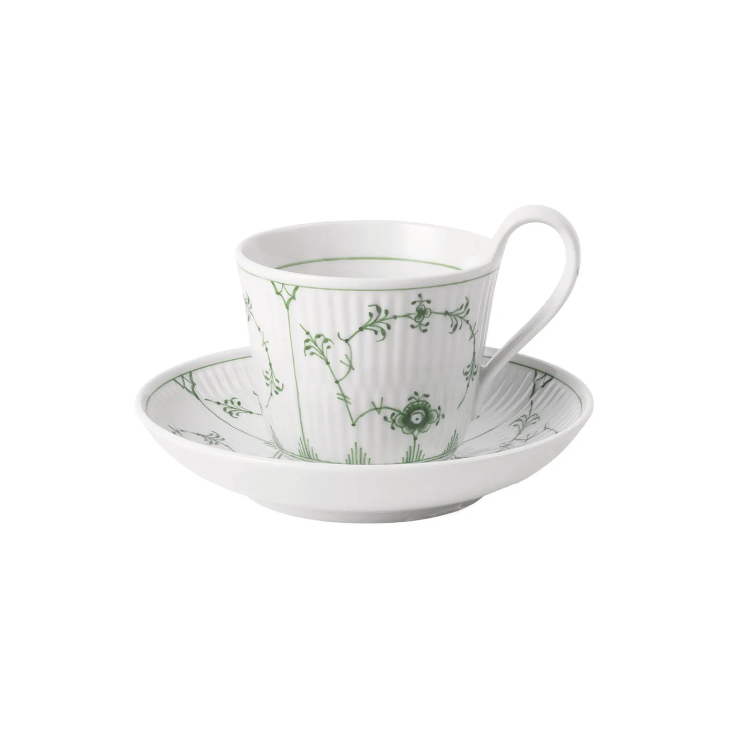 Grøn Musselmalet Riflet kop med underkop 24 cl fra Royal Copenhagen.