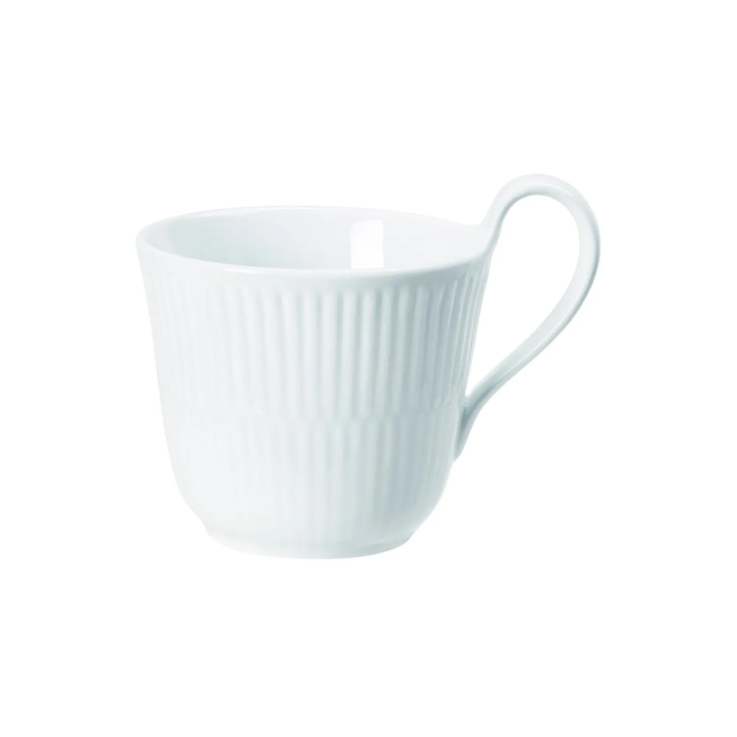 Med sit ikoniske formsprog og tidløse rifler er denne 24 cl Hvid Riflet højhankskop en evig favorit i enhver samling af kopper og krus. Koppens størrelse gør den perfekt til alle dine varme favoritdrikke. Hvar steldel i Hvid Riflet er smuk i sig selv eller i kombination med et eller flere af Royal Copenhagens håndmalede stel.