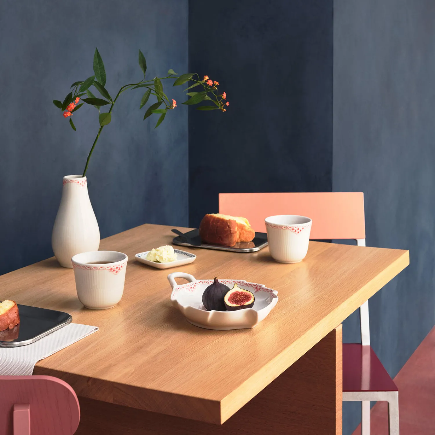 Endnu en smuk vase er blevet tilføjet til Royal Copenhagens kollektion, denne gang en Koral Riflet vase på 18 cm. Vasens inspiration er fundet i de bløde linjer og romantiske elegance fra den feminine Prinsesse kollektion. Vasen har et blødt, afrundet formsprog og en slank hals, der har plads til en eksplosion af blomster.