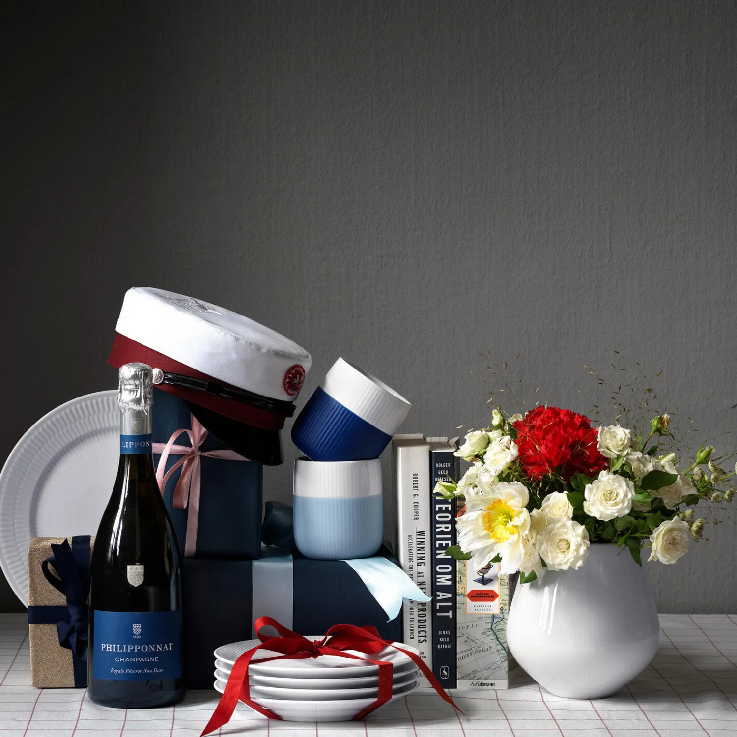 Riflet Contrast krus i porcelæn fra Royal Copenhagen. Farven fra Blå Mega Riflet er gengivet på dette Riflet Contrast krus på 35 cl, som også prydes af de taktile rifler fra det populære stel. Kruset kan med fordel sættes sammen med de håndmalede stel fra Royal Copenhagen, hvor farven på silikonebunden vil komplimentere de blåmalede detaljer.