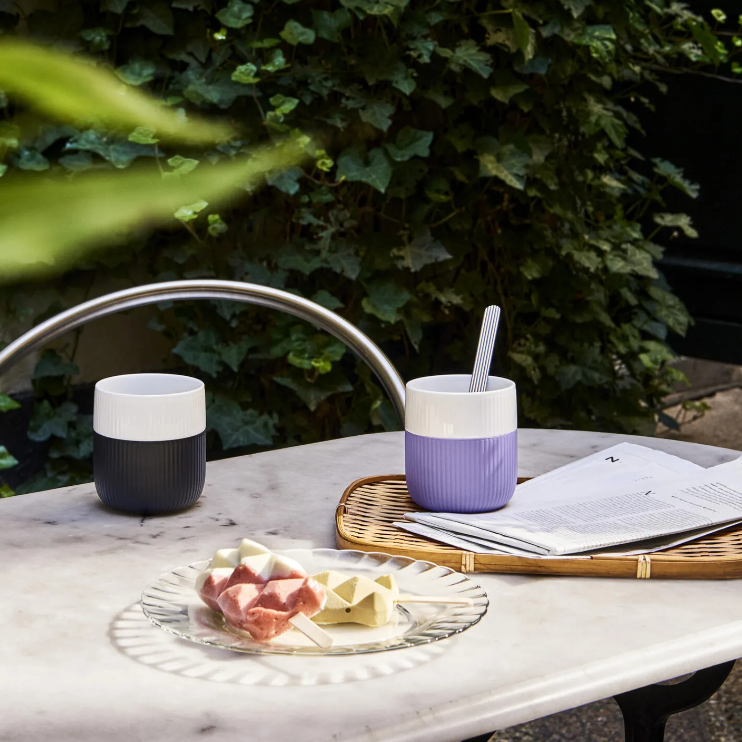 Riflet Contrast krus fås i regnbuens farver og er en fantastisk måde at tilføje et strejf liv til dit bord og dine skabe. Den bløde lavendelfarve på dette Riflet Contrast krus er både elegant og moderne, og porcelænets diskret riflede overflade fortsætter på det bløde silikonehylster for et sømløst og ubesværet look.