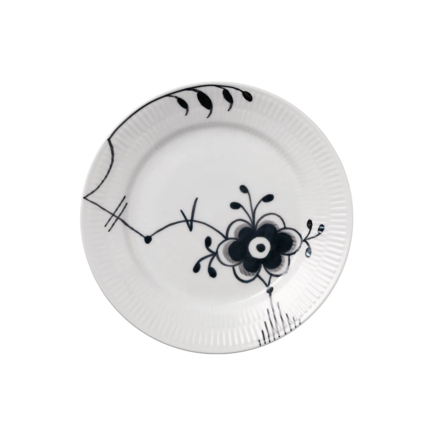 Det Sort Mega Riflet mønster skaber et moderne look til den tidløse form på denne tallerken. Tallerkenen er en re-lanvering og appellerer til dem, der elsker et monokromt udseende i sort og hvid samt er klassisk Royal Copenhagen design og håndværk. Med sine kun 19 cm er denne tallerken perfekt til frokost- eller dessertanretninger.
