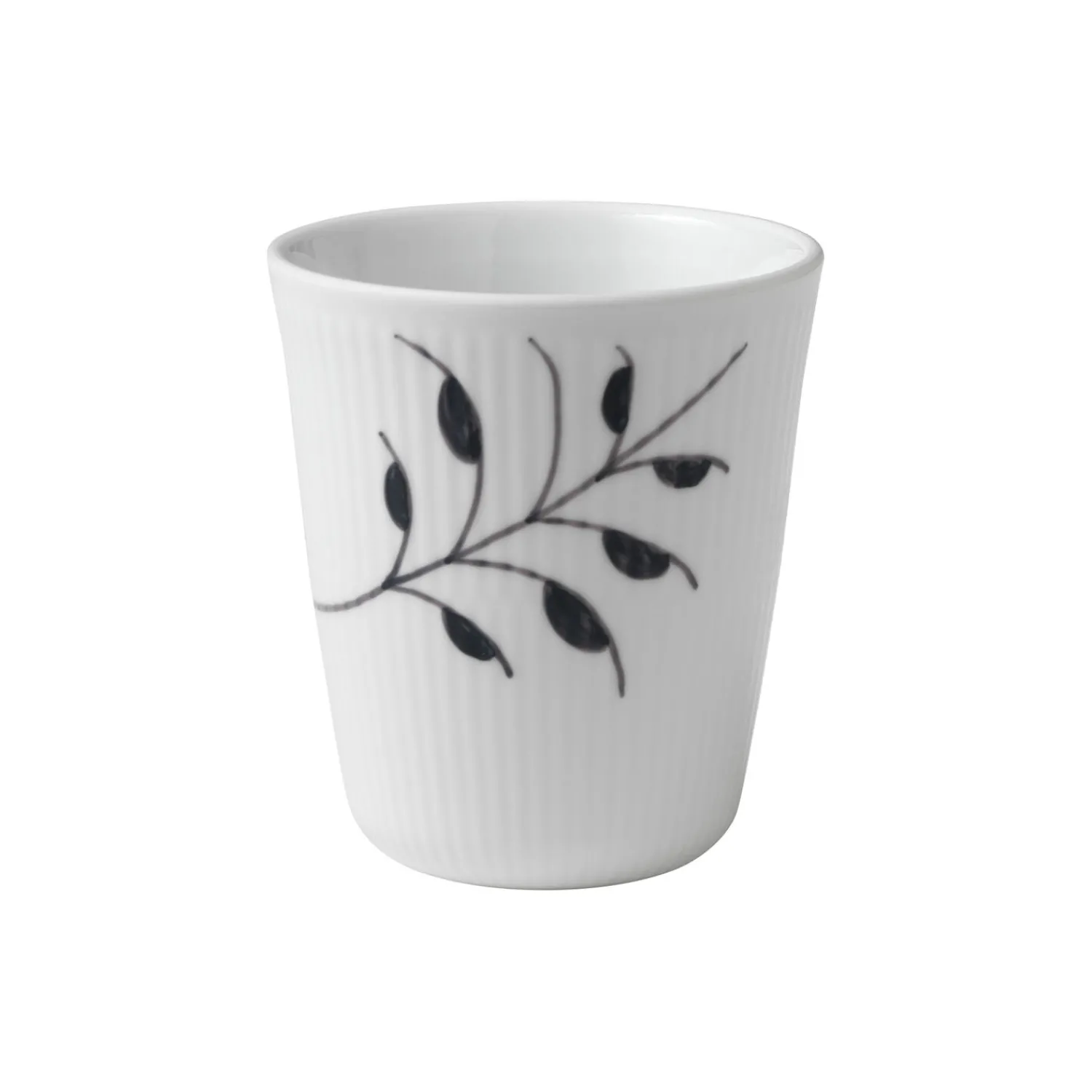 Sort Mega Riflet termokop i porcelæn fra Royal Copenhagen. Denne termokop rummer op til 29 cl af din yndlingskaffe eller -te. Koppen er håndmalet med Sort Mega Riflets ikoniske mønster, der breder sine sorte og grå elementer ud på den hvide porcelænskop og skaber et dramatisk udtryk. Koppens indre og ydre lag former et hulrum, der hindrer koppen i at lede varme til ydersiden og holder dine drikke varme i længere tid.