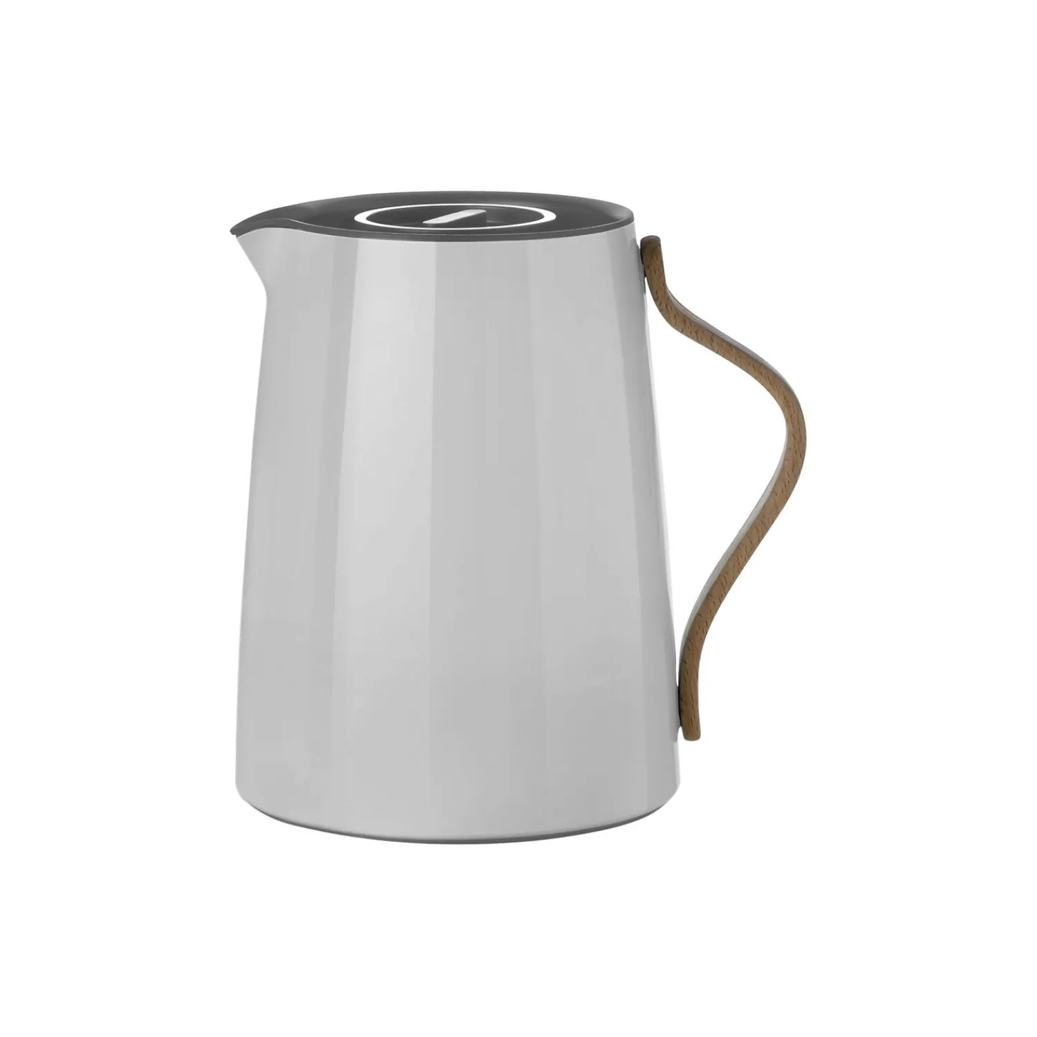 Emma seriens revolutionerende te-termokande i lakeret rustfrit stål med stålindsats og indbygget tefilter sætter nye standarder for te-brygning. Med et enkelt twist på låget lukkes det indbyggede smart-filter og teen stopper med at trække. Kanden, der indeholder 1 l., er designet af HolmbäckNordentoft i et moderne, skandinavisk design, der kombinerer højglanslakeret stål i en nordisklys grå tone med en hank i bøgetræ. Emma serien – en smuk designklassiker til hverdagen.