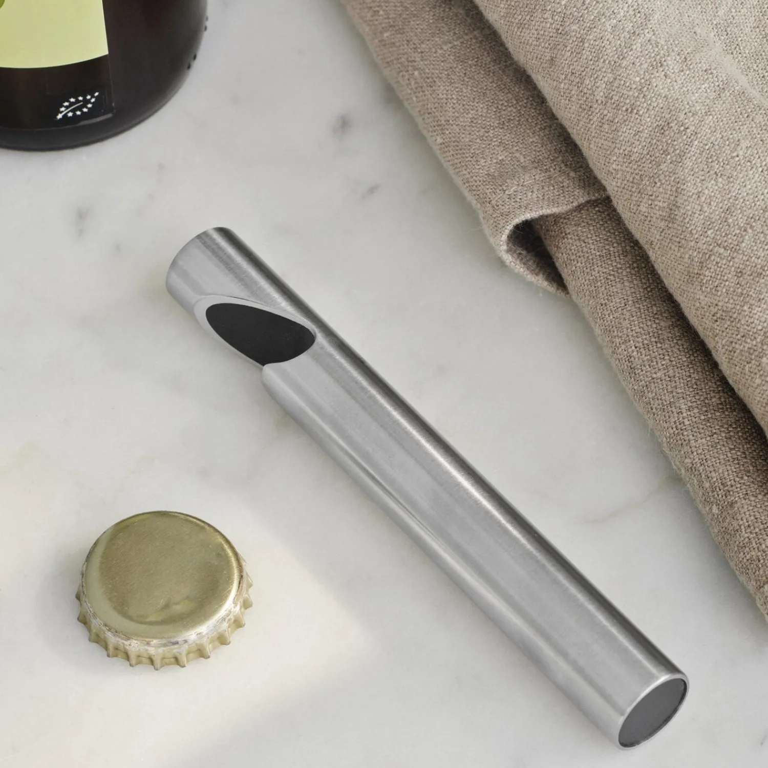 Oplukkeren i Original-serien, der omfatter tilbehør til baren, er skabt af Peter Holmblad. Den er udført i rustfrit stål og kendetegnet ved den cylindriske form, der præger mange af Steltons produkter. Den ikoniske kapselåbner, udført i rustfrit stål, vil pryde ethvert bord eller bar.