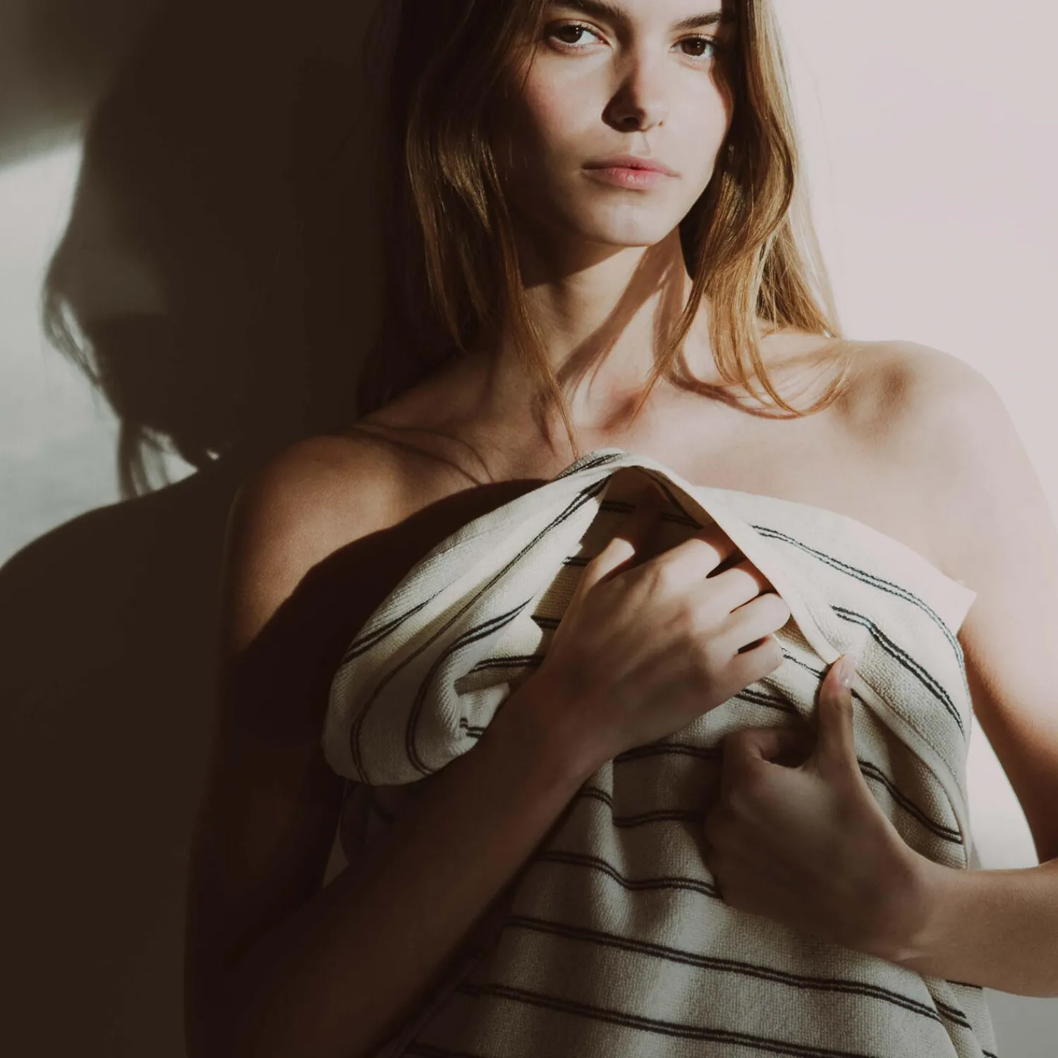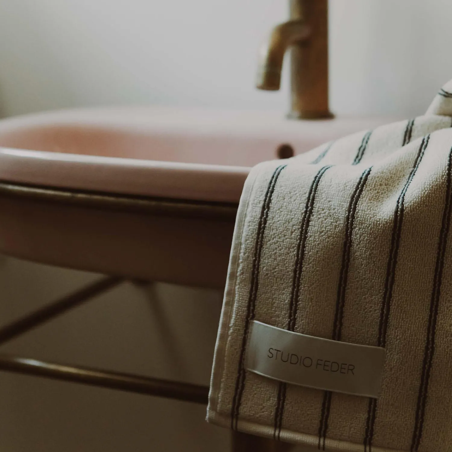 Lækkert, blødt og absorberende håndklæde i 100% økologisk Gots certificeret bomuld. Håndklæde kollektion i tidløst design i holdbare naturmaterialer i fine afstemte farver. Håndklædet er i alt sin enkelthed designet med fine smalle kanter og er tæt vævet for den bedste absorbering og holdbarhed. Håndklædet er del af en serie på matchende håndklæder i flere størrelser. Eksklusivt håndklæde produceret i Portugal.