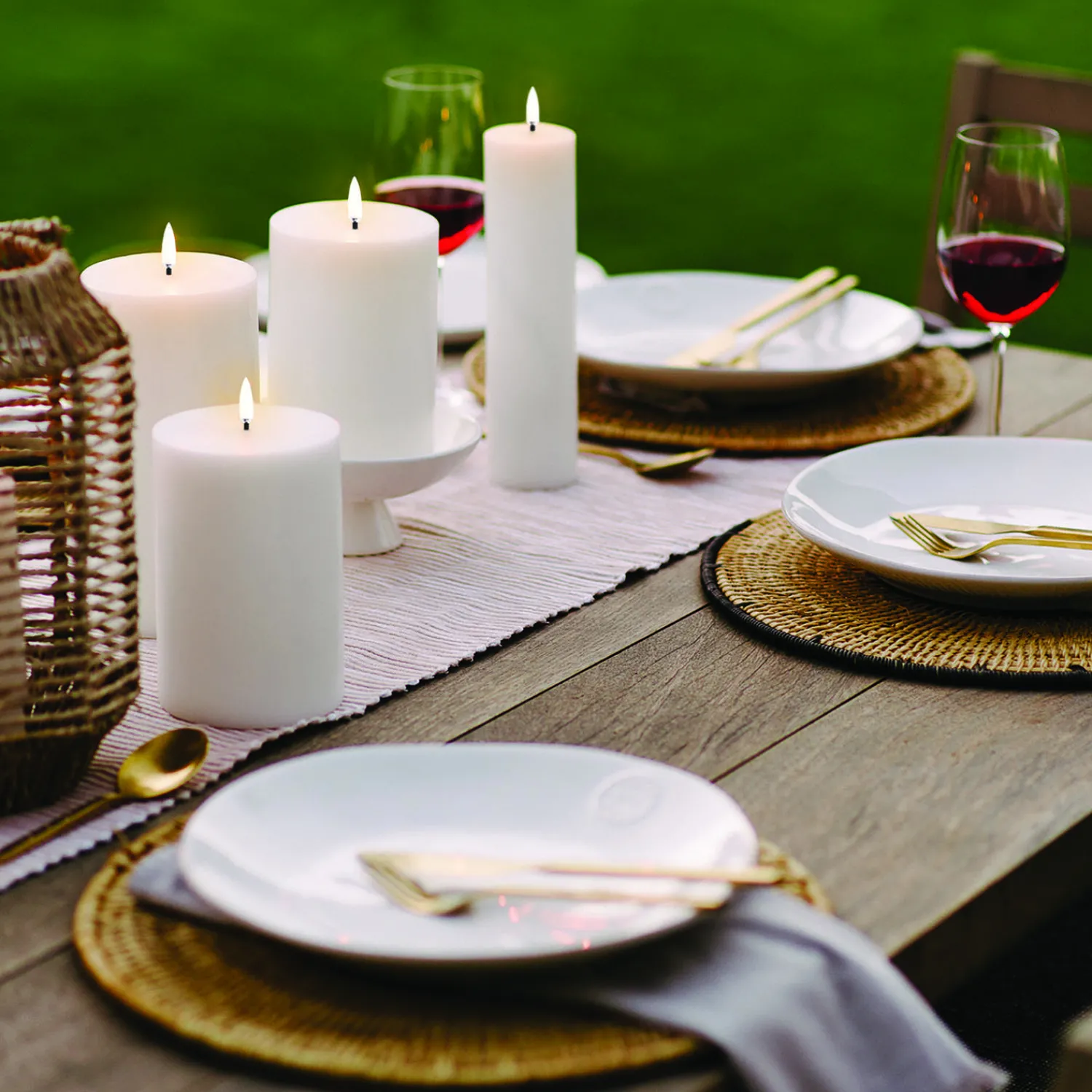 The Pillar Candle is a traditional candle in aesthetic only. The design of the candle has recreated all the beauty and nostalgia of candlelight while removing the risk associated with chemical compounds being released during the burning process. Unscented. Built-in 6-hour Timer. Patent Pending 3D Flame. Uses 2 x AA batteries (not incl.). 400+ hours battery life. Can be used with the Uyuni Remote Control (sold separately).
