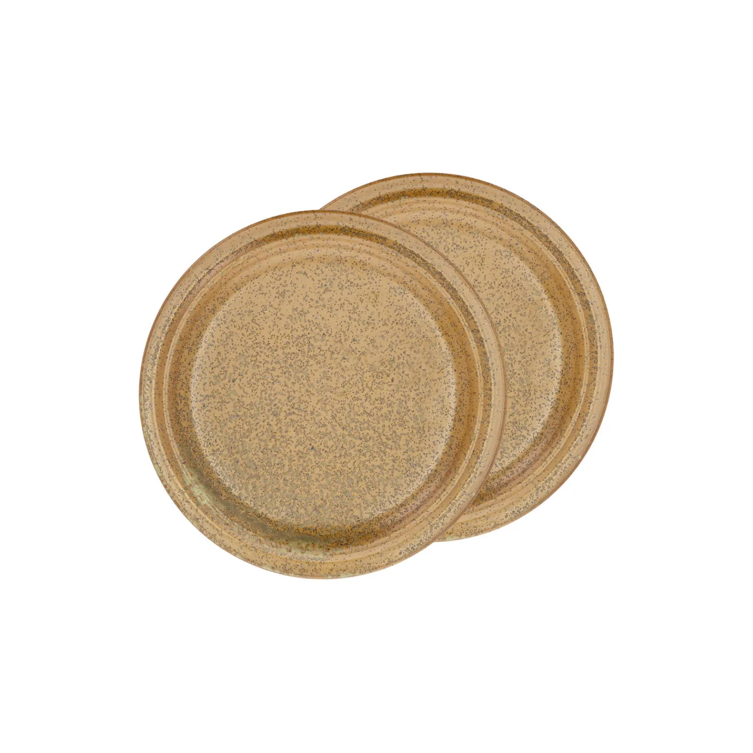 2 frokosttallerkener i porcelæn med en smuk, reaktiv glasur. De har et fantastisk udseende med en unik overflade, da hvert enkelt produkt er hånddekoreret, og derfor kan farve og overflade variere.