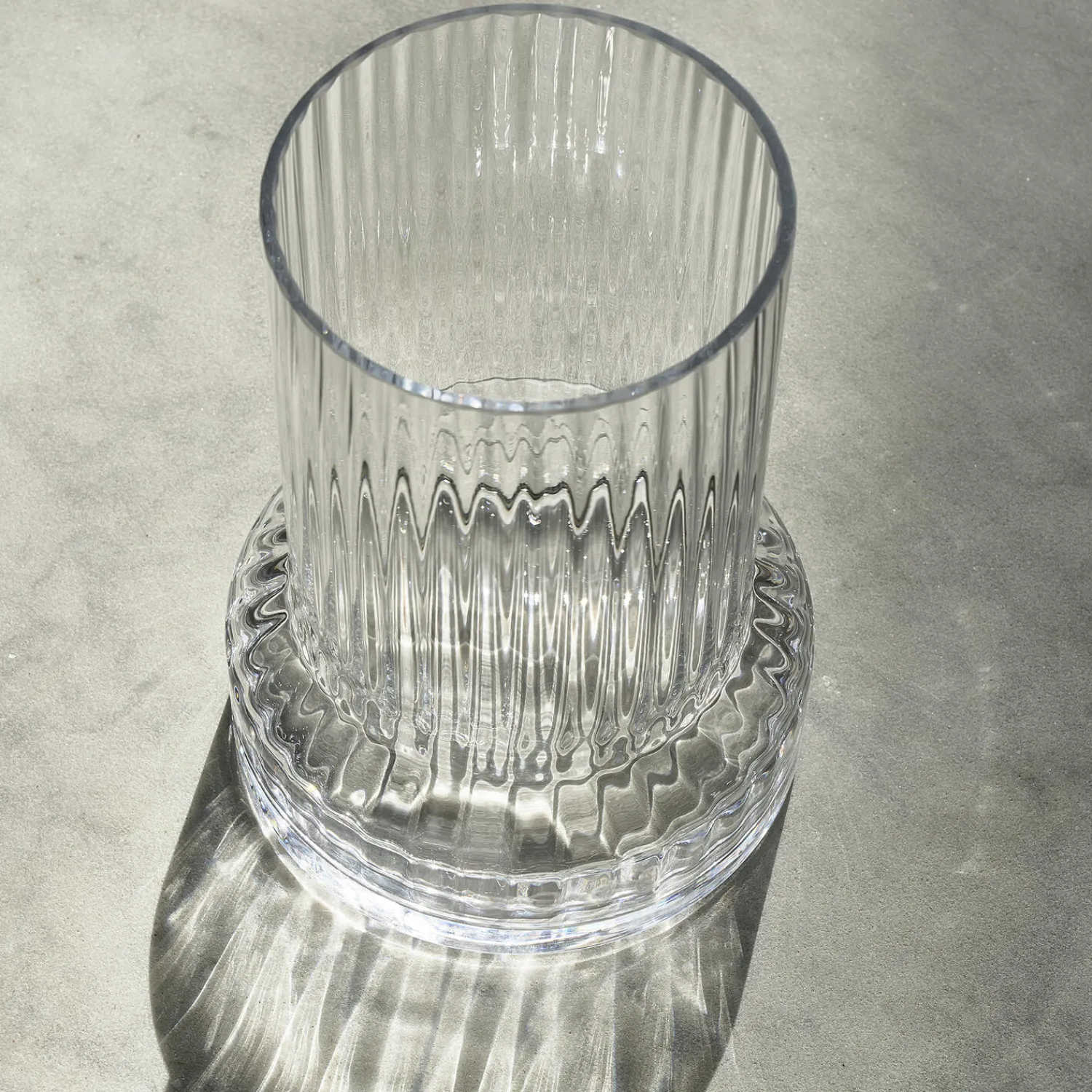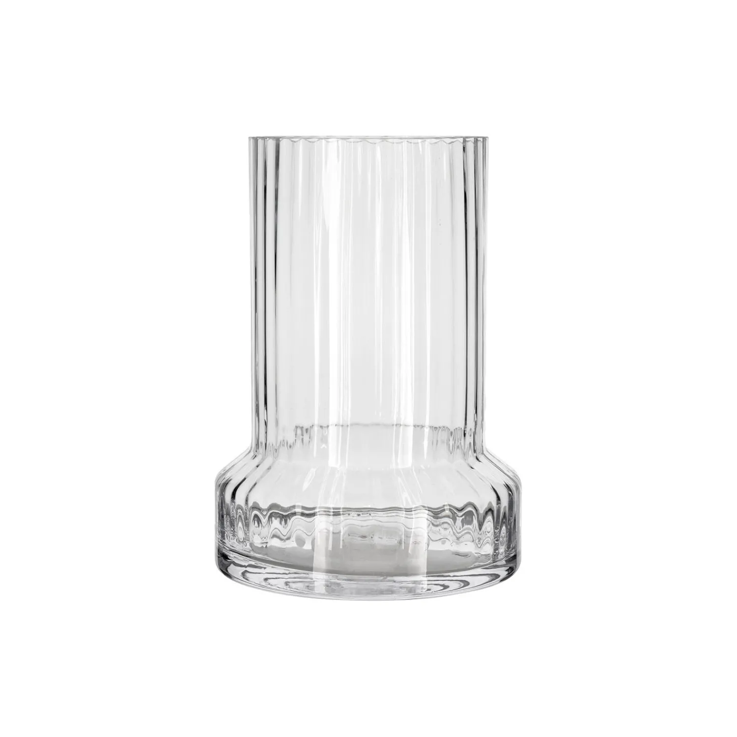 Den mundblæste Hvils-vase i ultraklart glas med dekorative riller har en dragende effekt. Den er fremstillet i Europa af dygtige glashåndværkere. Vasens form med en bred bund og smallere, rørformet top tillader blomsterne at sprede sig ud i vasen. Den er designet til at lade blomsterne komme til deres ret.
