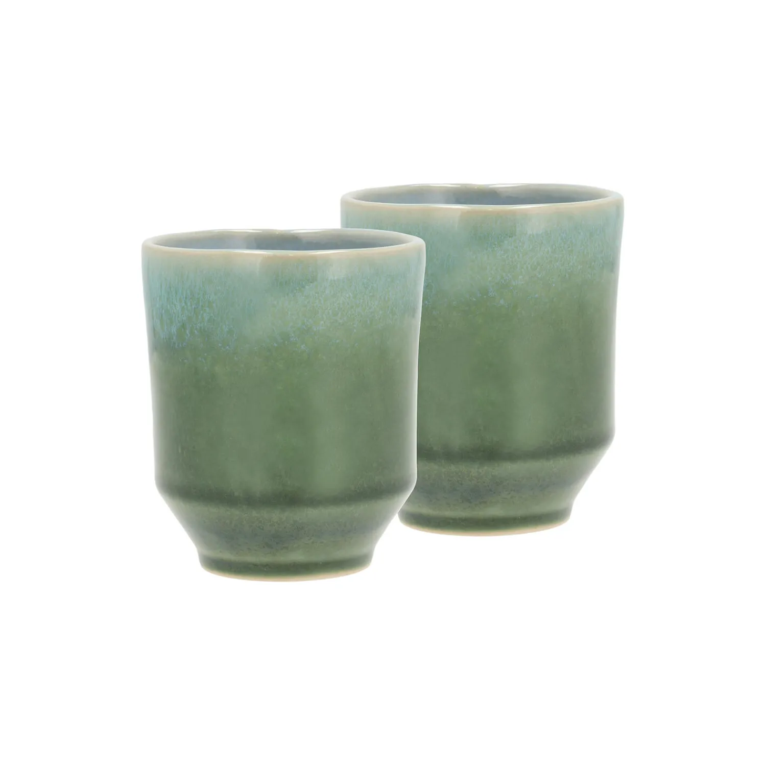 2 krus, 18 cl, i stentøj. Stentøjsstellet fra Villa Styles fremstilles i Portugal af keramikere med stor knowhow og erfaring. Alle steldelene formes og finpudses i hånden, hvilket giver et skønt og unikt stentøjsstel samt en glat og fin overflade. Herefter påføres den reaktive glasur, og stentøjet brændes i ovnen ved 1150 grader. Den reaktive glasur gør hvert produkt unikt. Udseendet afhænger af formen, brændetemperaturen og placeringen i ovnen. Alle glasurer er skabt fra bunden af vores portugisiske producent. De nøje udvalgte glasurer i livsbekræftende og eksklusive farver tiltaler øjet. Serien kan sættes sammen på kryds og tværs, og derved skabes et personligt stel. Den brede vifte af farver indeholder noget for enhver smag, både den farveglade og den mere afdæmpede. Fabrikken genanvender vandet, der bruges i produktionen, og varmen genereret af keramikovnene bliver ført ind i rummene, hvor keramikken tørres, så al gasenergi genanvendes. Fabrikken laver sit eget ler og genanvender alle rester ved at blande dem med nyt ler og bruge blandingen til nye produkter, så der ikke er noget, der går til spilde.