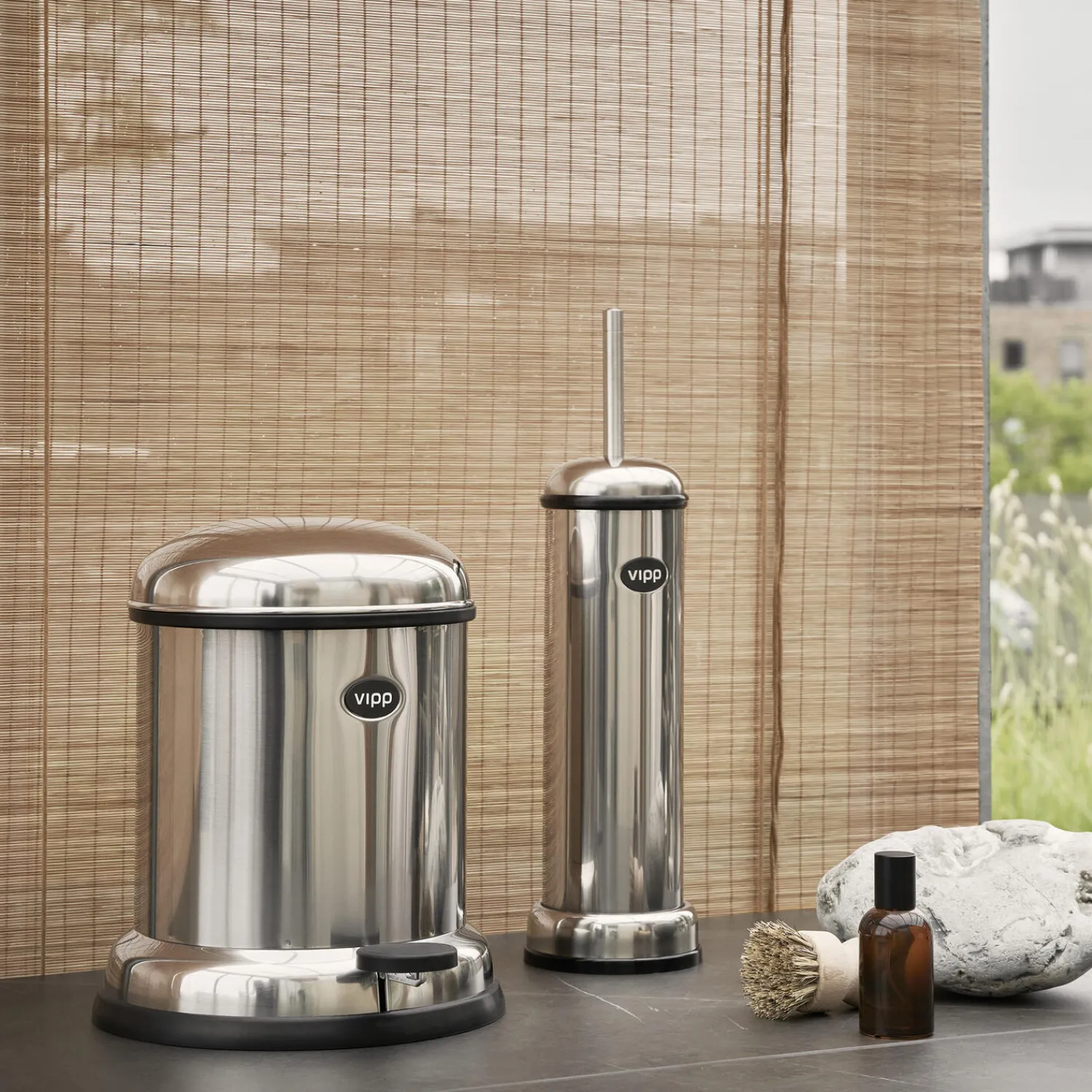 Vipp toiletbørsten er et raffineret badeværelsesprodukt. En silikonering i toppen af toiletbørsten sikrer lufttæt tillukning, mens ekstra vægt i bunden skaber stabilitet. Toiletbørsten er udstyret med et udskifteligt børstehoved og inderrør.