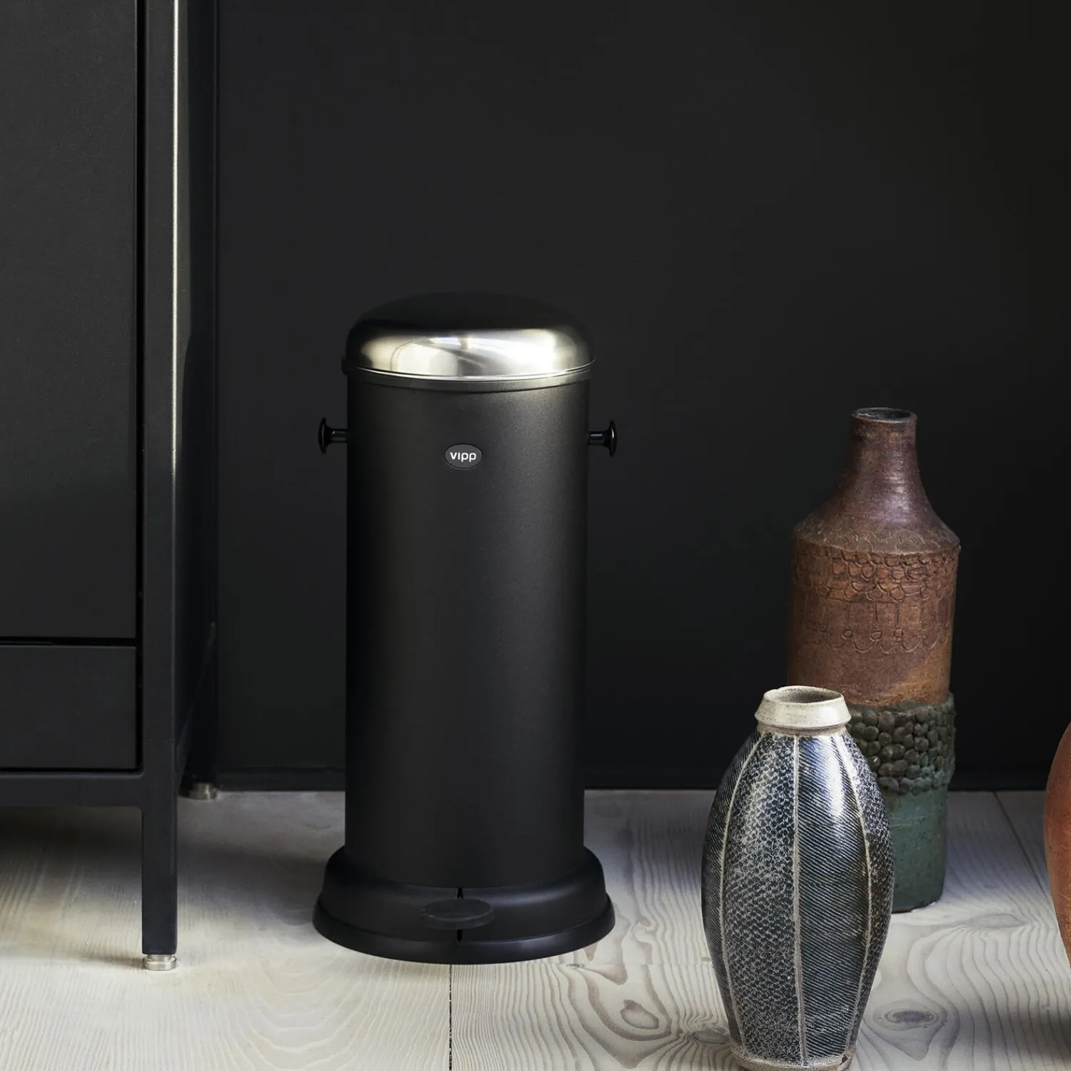 Vipp16 pedalspand er en stor skraldespand til køkkenet, kontoret eller badeværelset. Denne pedalspand er udstyret med en udtagelig inderspand, et låg der sikrer lufttæt tillukning og en dæmpemekanisme, der lukker spandens låg i en blød bevægelse. En gummiring i bunden beskytter gulvet.