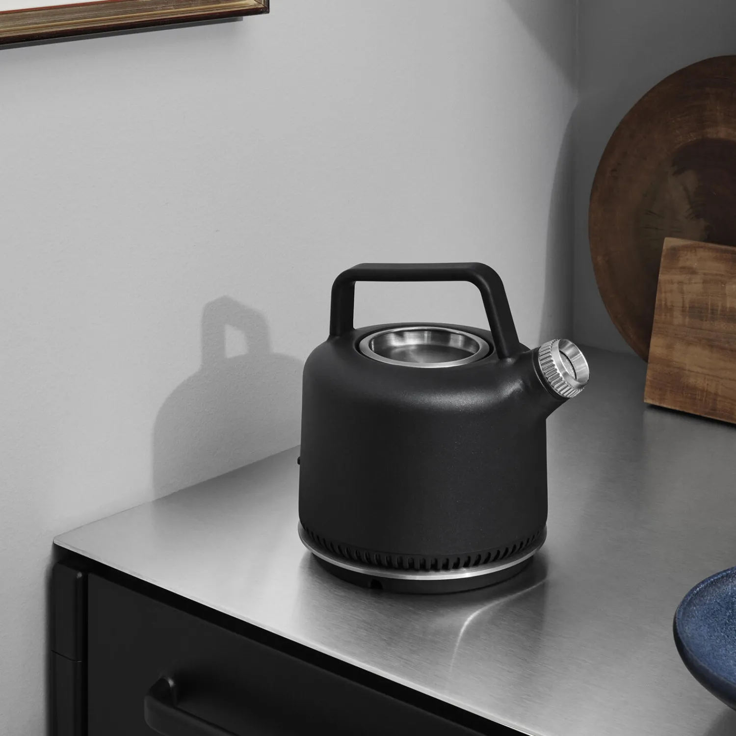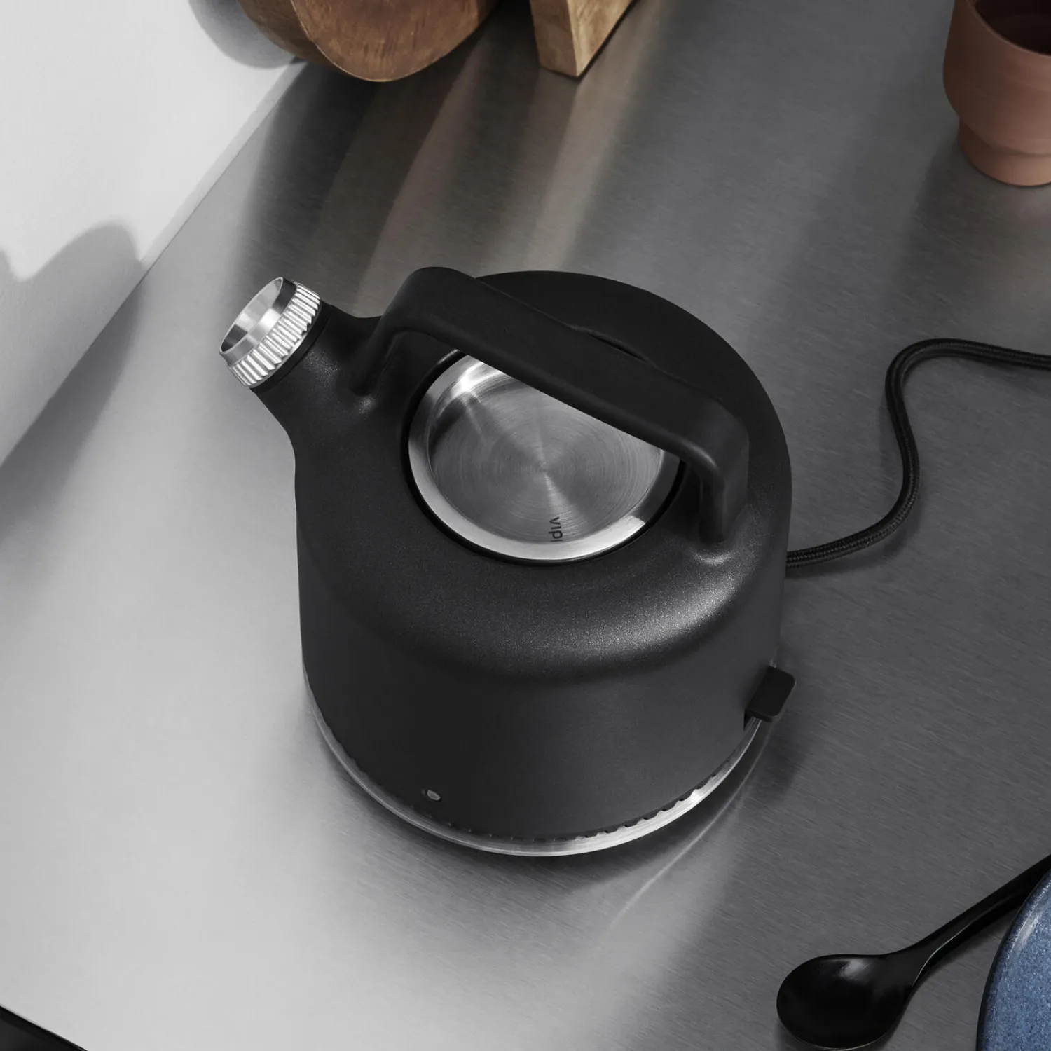 Vipp elkedlen er et essentielt redskab til køkkenet. Med en solid pulverlakeret overflade, skridsikre gummidetaljer og et udtageligt filter og tud, er den elektriske elkedel en funktionel tilføjelse til ethvert køkken.