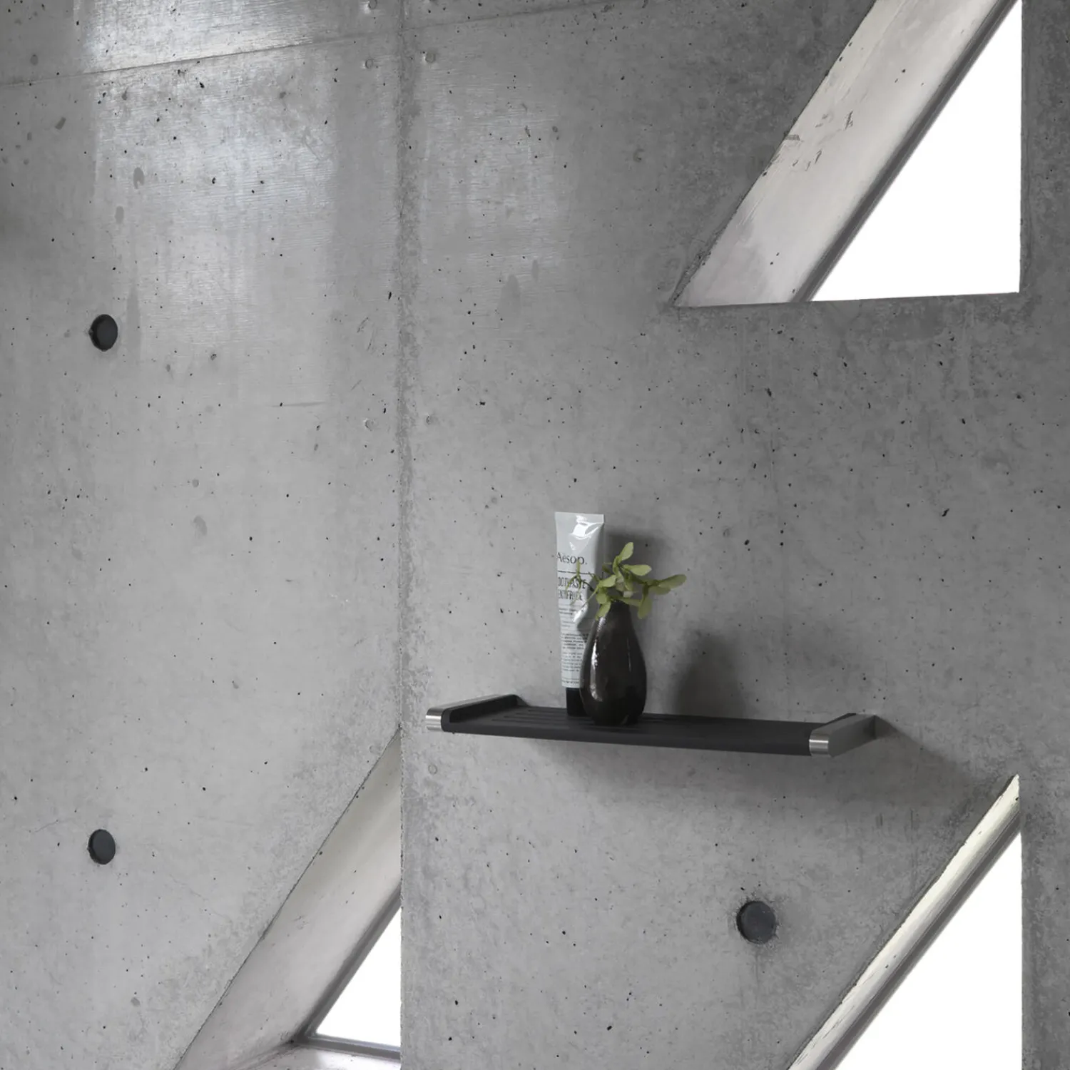 Vipp brusehylden er en funktionel tilføjelse til badeværelse og brusekabine. Syreresistente materialer beskytter brusehylden mod sæberester, og en aftagelig silikoneindsats gør hylden let at rengøre.