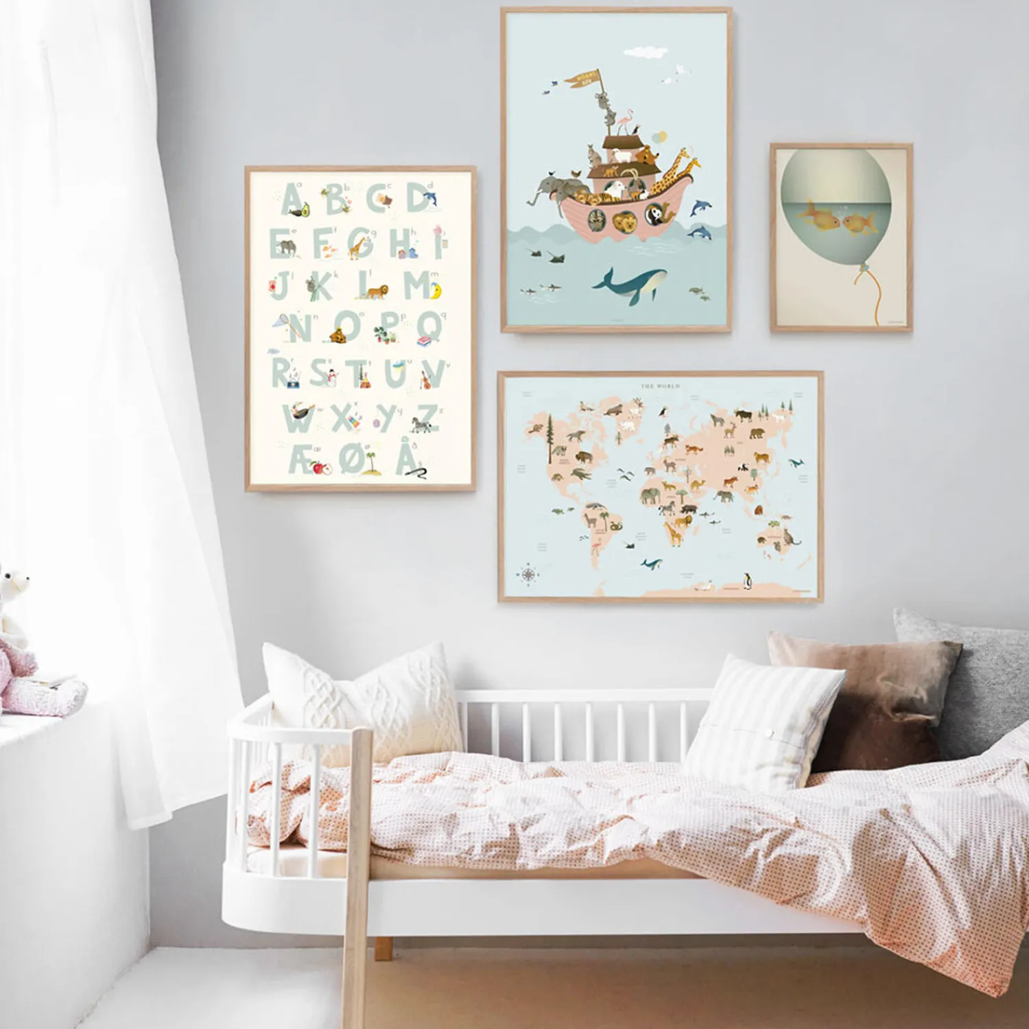 Store og små, i vand og til lands, alene og i flok. Verden er fuld af helt fantastiske dyr. De har alle sammen et hjem, ligesom dig. De syv kontinenter på kortet viser, hvor nogle af dyrene hører hjemme. Flere af dyrene kender du helt sikkert allerede, mens nogle af dem måske er helt nye for dig. De glæder sig alle sammen til, at du lærer dem at kende. Plakaterne er FSC certificeret og trykt på 170 gr. Arctic Silk papir produceret i Sverige. Produktet er produceret i Danmark.