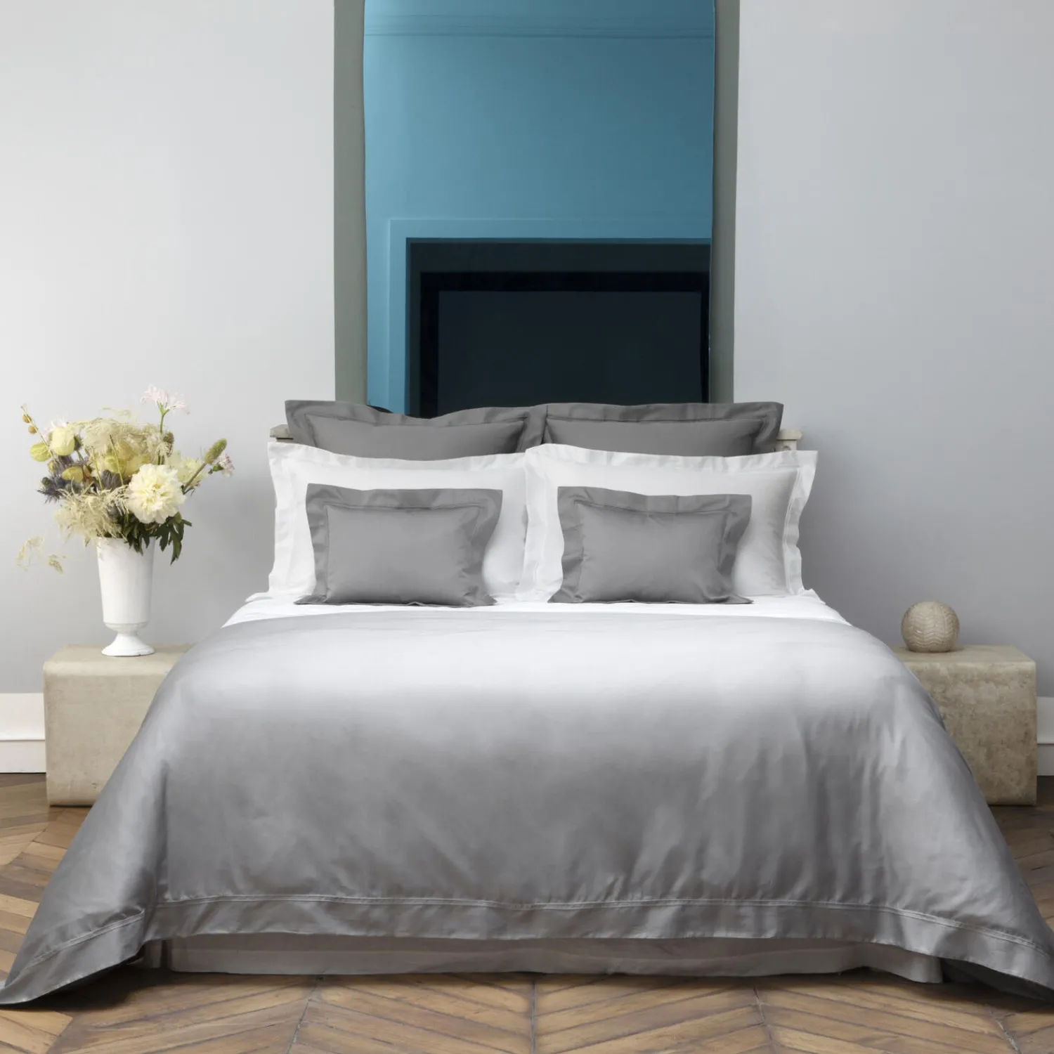 Triomphe sengetøj i 100% satinvævet egyptisk bomuld fra Yves Delorme. Farve: platine.