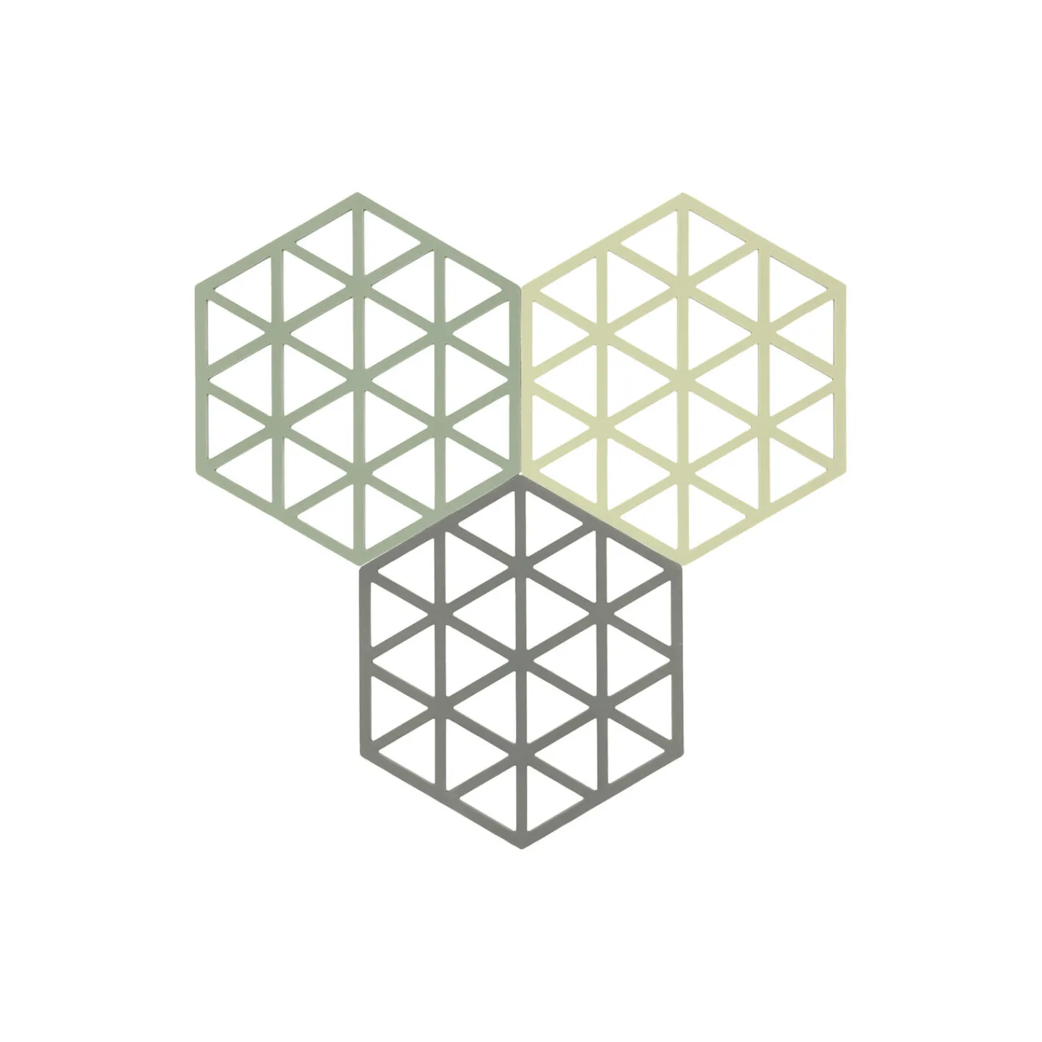 Triangles bordskånerne i silikone er så grafisk dekorative, at de indbyder til at lægge en flok ud i hele bordets længde uden at stille noget på dem. De er varmebestandige op til 250 °C og kan vaskes i opvaskemaskine.