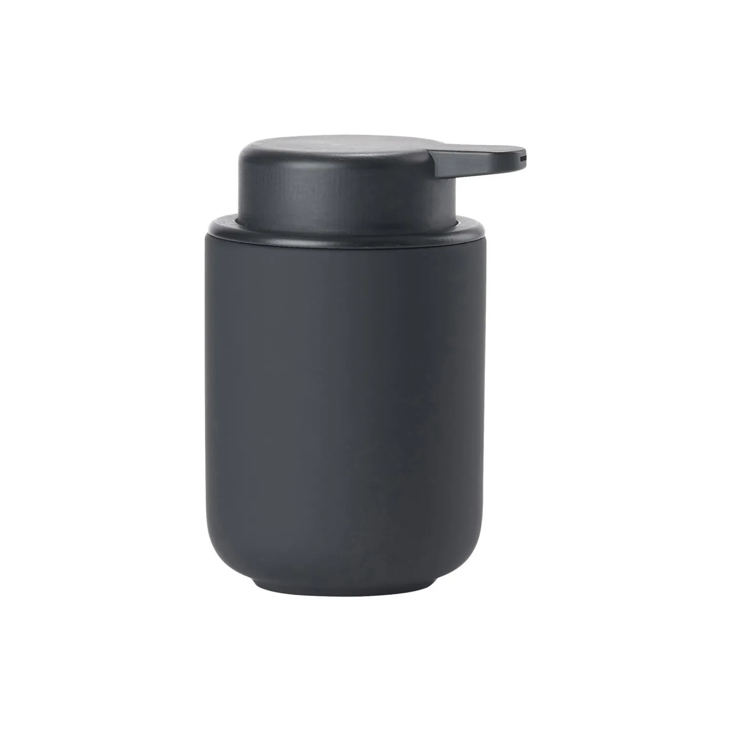 Ume sæbedispenser i stentøj fra Zone Denmark. Farve: black. Mål: H: 12,8 x Ø 8,3 cm. Indeholder: 0,25 L. Design: VE2.